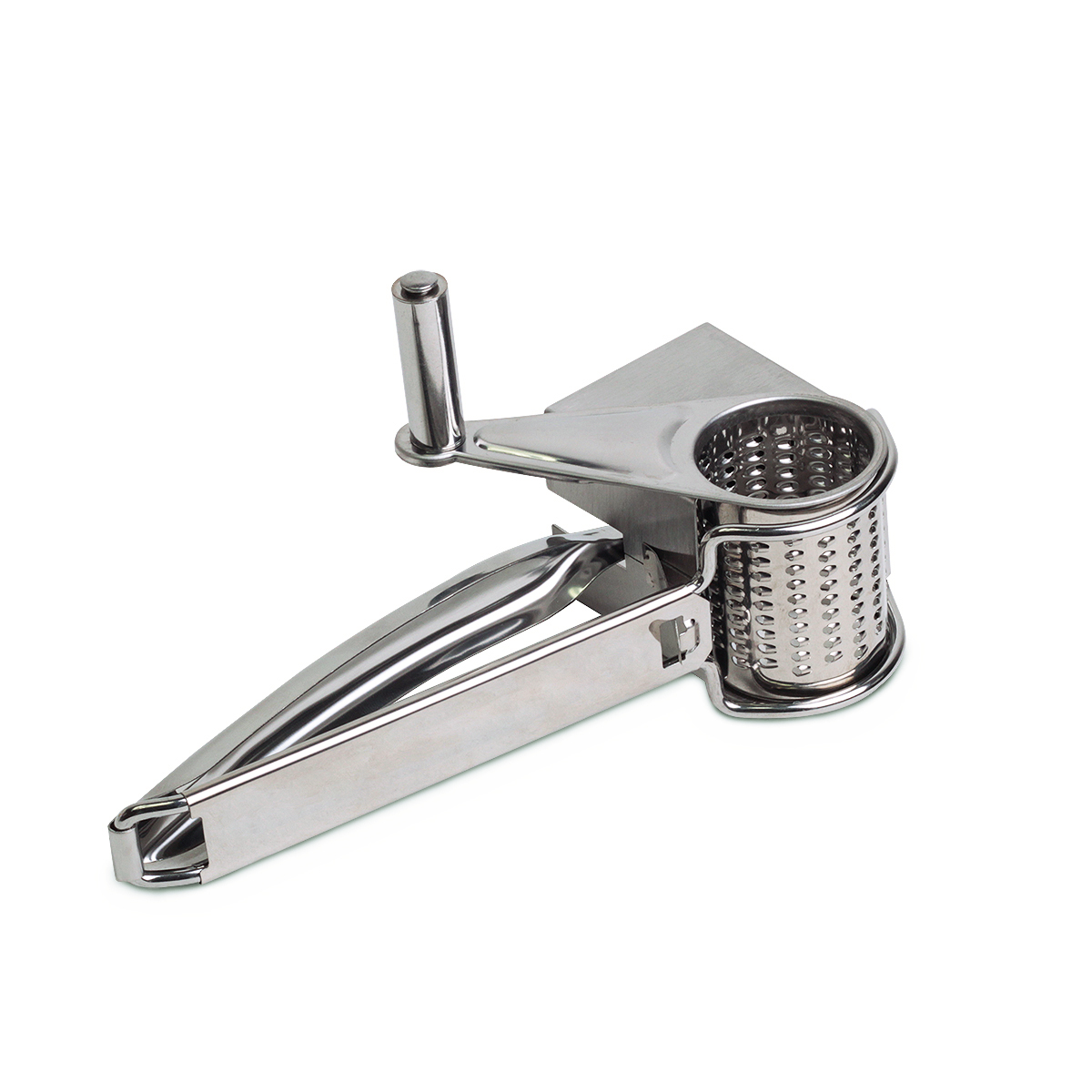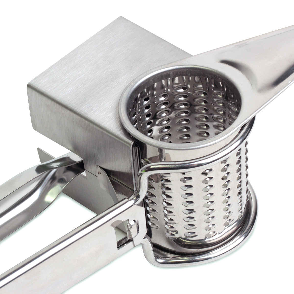 Rotējoša siera rīve 19,5 × 10 × 8 cm, 5094, Kamille. Izgatavota no augstas kvalitātes nerūsējošā tērauda. Izmēri: 19,5 × 10 × 8 cm. Rīve ir aprīkota ar drošības fiksatoru un izņemamu cilindru. Piemērota cietāku produktu rīvēšanai. Viegli un ērti lietojama. Ieteicama mazgāšana ar rokām.