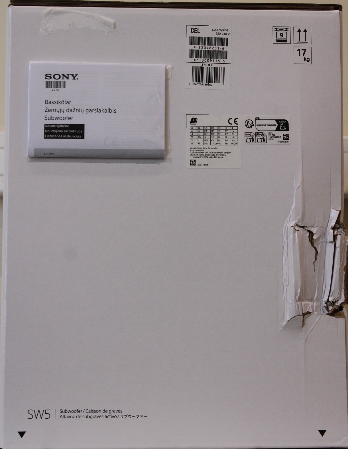 SALE OUT. Sony SA-SW5 Wireless 300W Subwoofer for HT-A9/A7000 | Sony Speaker | Subwoofer for HT-A9/A7000 | DAMAGED PACKAGING | 300 W | Black | 2 Ω | Portable | Wireless connection