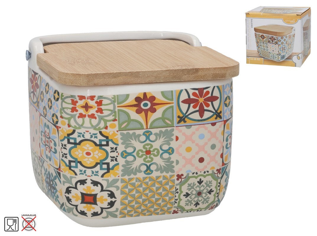 Sāls trauks ar bambusa vāku, 12 x 12,5 x 11 cm, KITCHEN&GO 8445393397115