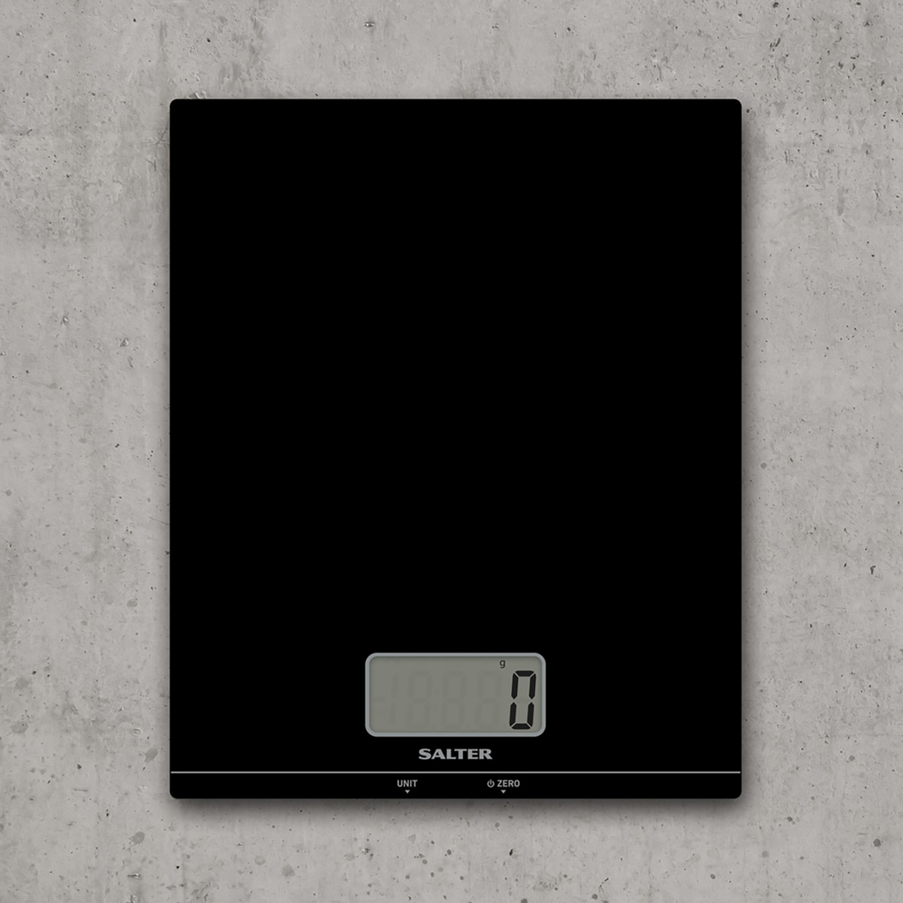 Glīti un eleganti Salter lielās platformas elektroniskie svari ir ideāls virtuves rīks visiem maizniekiem, kuri meklē perfektu precizitāti.