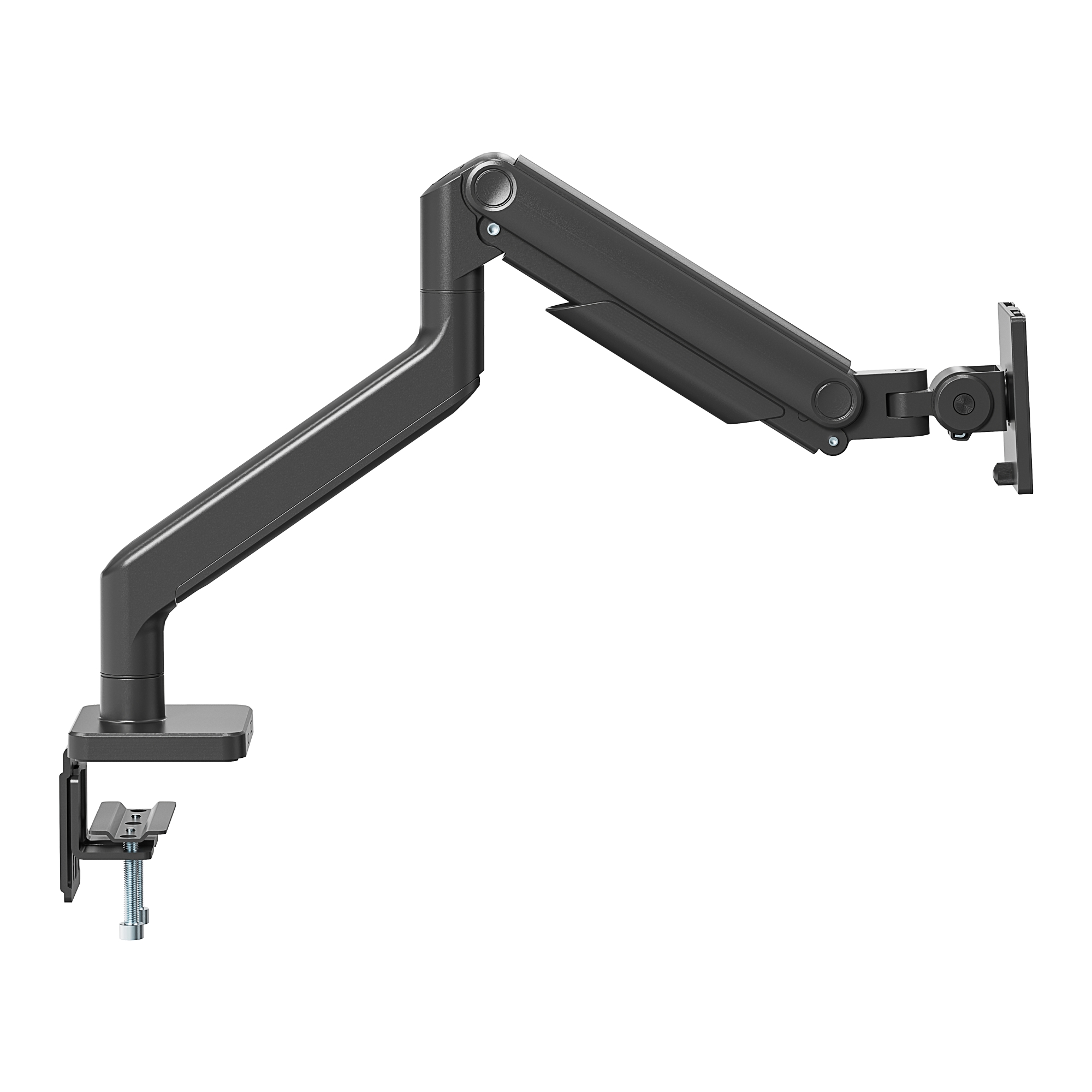 Šis stiprinājums ir izstrādāts vienkāršai monitora uzstādīšanai, un tam ir atsperes svira, kas ļauj regulēt augstumu, slīpumu un rotāciju, nodrošinot jums perfektu skata leņķi, lai uzlabotu produktivitāti un komfortu.