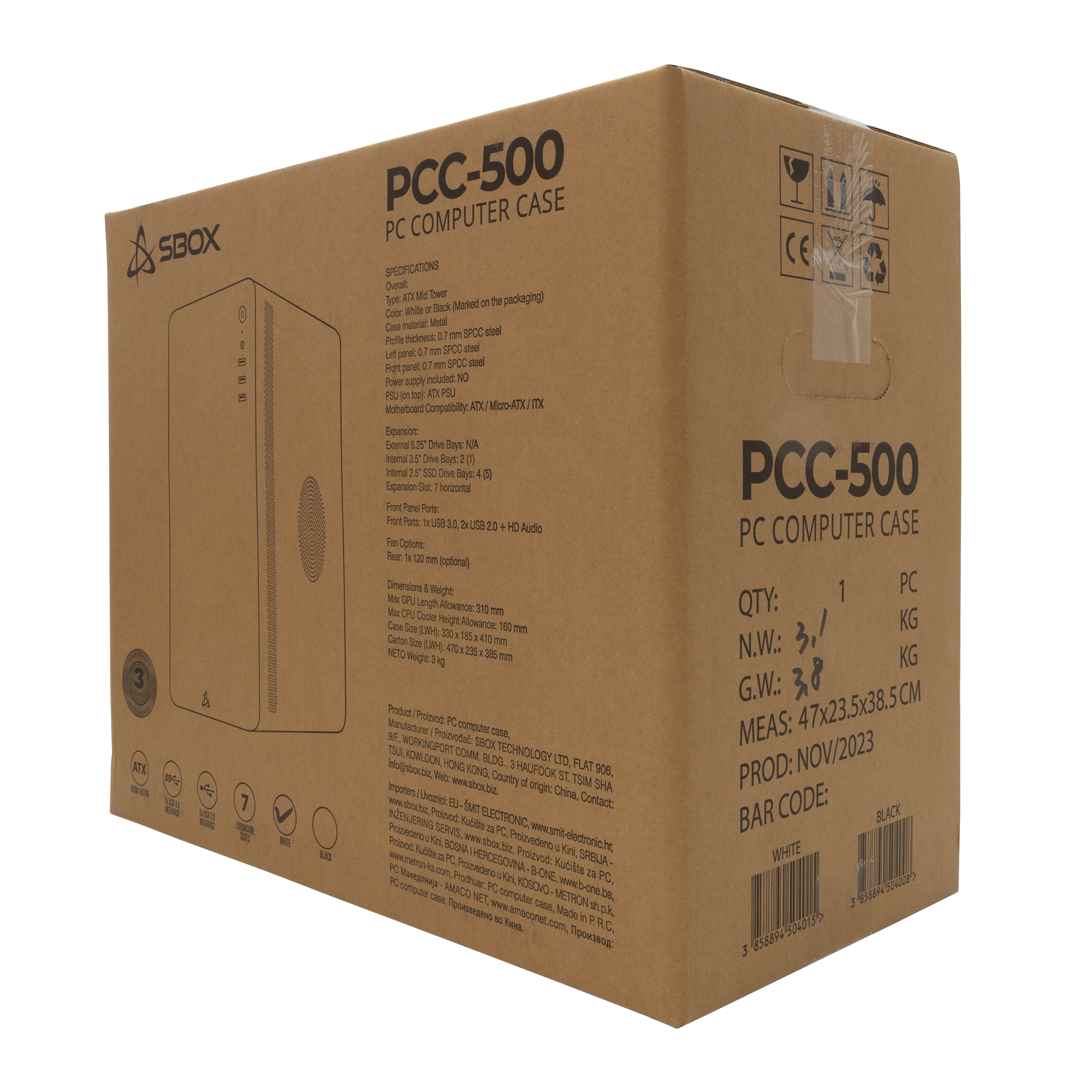 Sbox PCC-500 White ATX