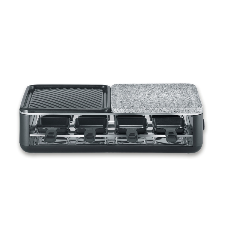 Raklešu grils ar 8 pannām ar nepiedegošu pārklājumu, ar klikšķa apturēšanas funkciju.