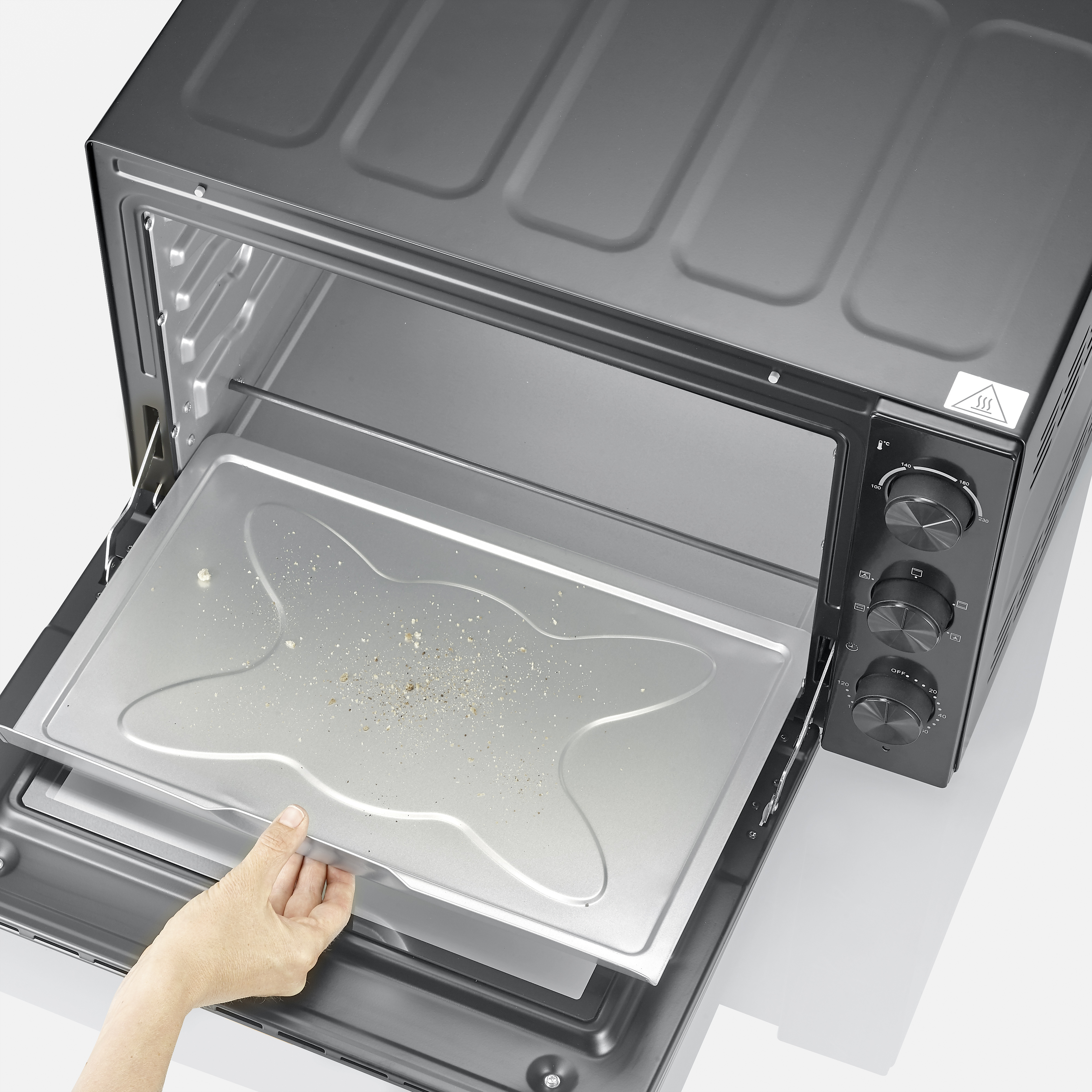 Vai meklējat efektīvu un daudzpusīgu cepeškrāsni, kas spēj apstrādāt lielākas maltītes? Mūsu XXL galda krāsns ar 46 litru ietilpību ir ideāls risinājums jums! Ar šo ietilpīgo cepeškrāsni jūs varat viegli pagatavot visu, sākot no gardām picām un kraukšķīgām frī kartupeļiem līdz sulīgām maizītēm, saldām kūkām un grilētai vistai.