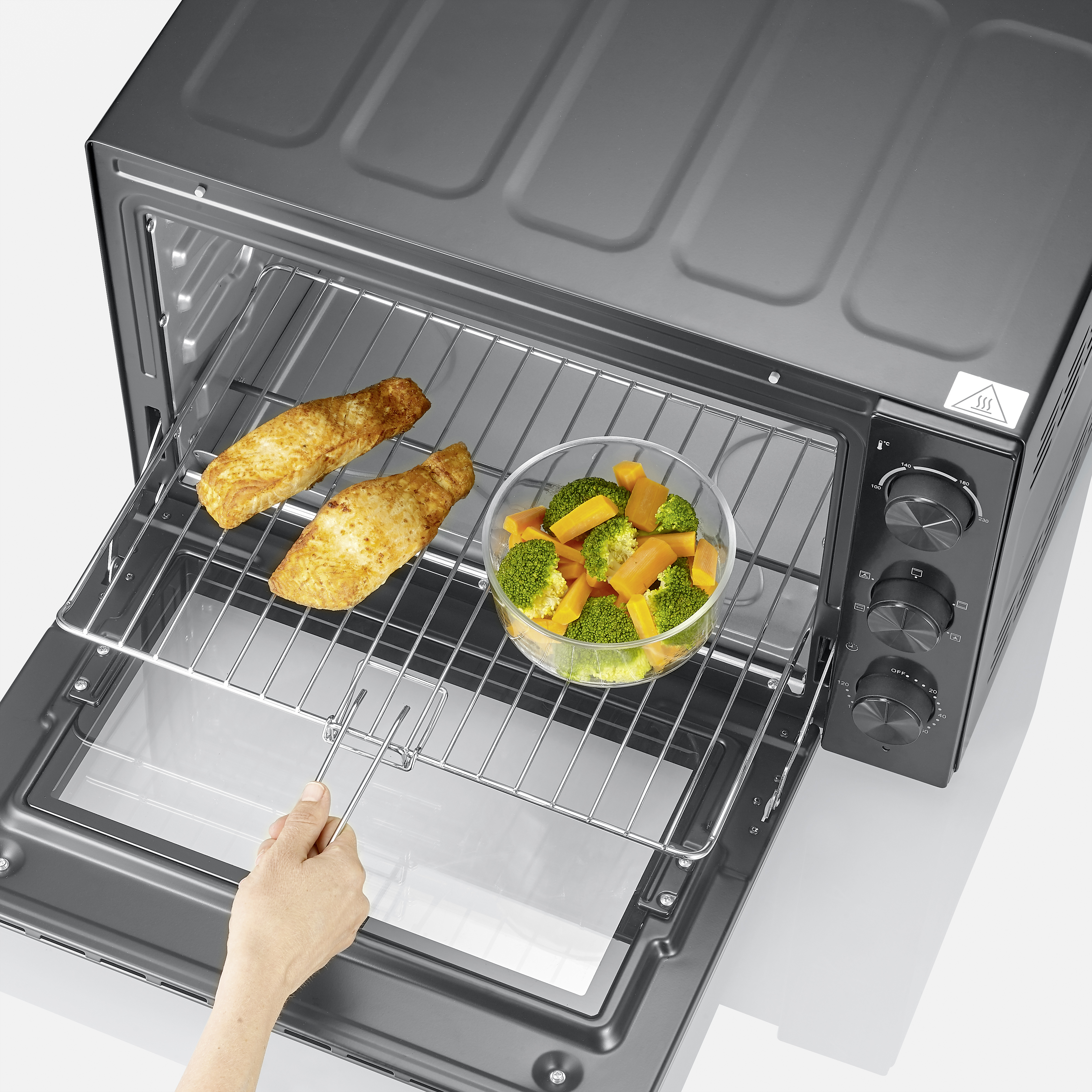 Lai ēdiena gatavošana būtu vēl ērtāka, mūsu XXL galda krāsnij ir integrēts taimeris, ko var iestatīt līdz pat 120 minūtēm, un skaņas signāls atgādinās, kad ēdiens ir gatavs.