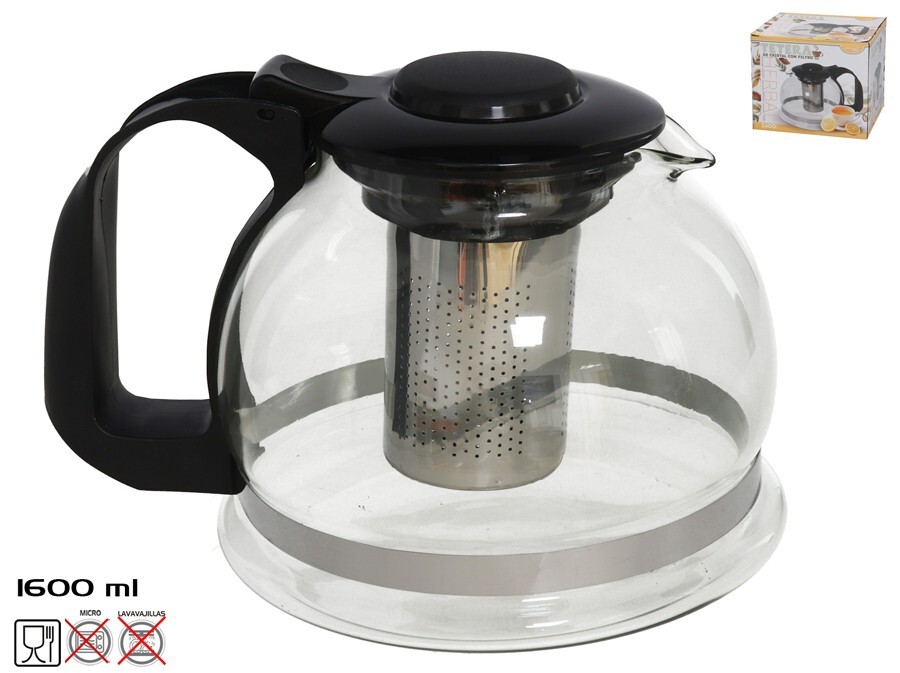 Stikla tējkanna ar filtru 1600 ml, 14,5 x 20 x 15,5 cm, KITCHEN&GO