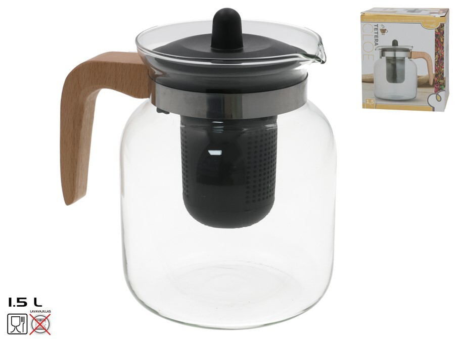 Stikla tējkanna ar koka rokturi, 1,5 l, 17,5 x 17 x 12 cm, KITCHEN&GO 8445393418353