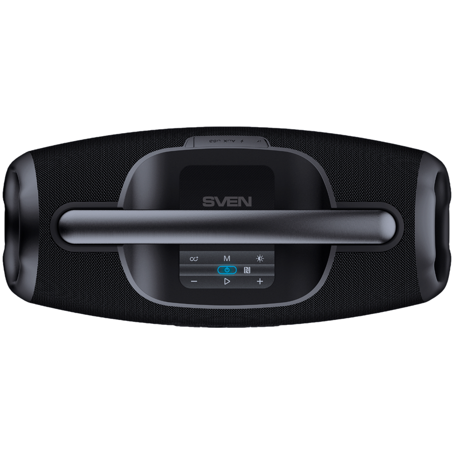 Portable speaker SVEN PS-990, black, power output 180W (RMS), TWS, Bluetooth, RGB backlight, Waterproof (IPx7), USB, Lithium battery, Battery life – up to 16 hours