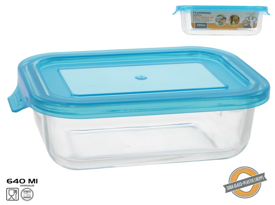 Taisnstūra stikla pusdienu kārba 640 ml, 5,5 x 19,5 x 13 cm, KITCHEN&GO 8445393406022