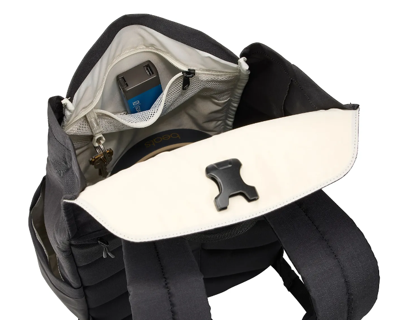 Mūsdienīga mugursoma ar drošu atloka aizdari, lai viss būtu droši universitātes pilsētiņā vai ārpus tās.