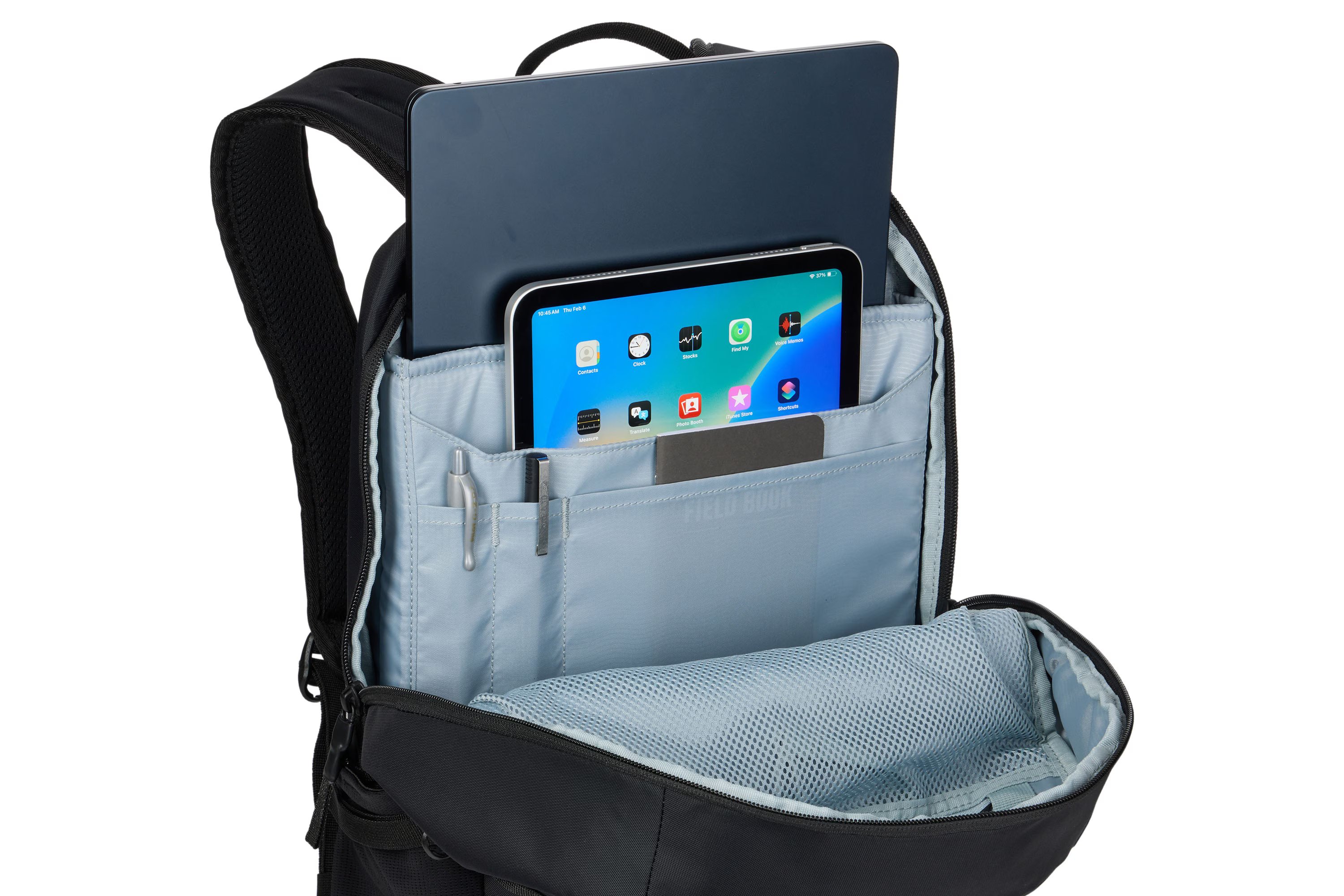 Paaugstinātas, speciāli izveidotas kabatas pasargā klēpjdatoru un planšetdatoru līdz 16 collu izmēram