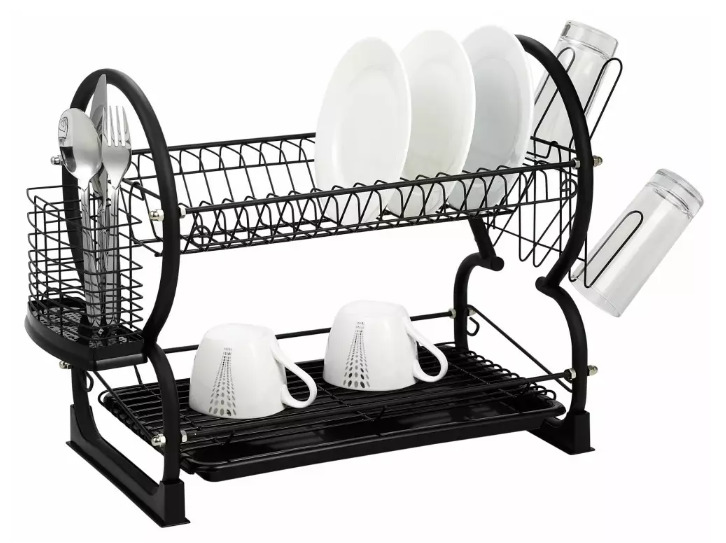 Trauku turētājs - metāla trauku žāvētājs no melnas stieples ar pretslīdes silikonu. Divu līmeņu