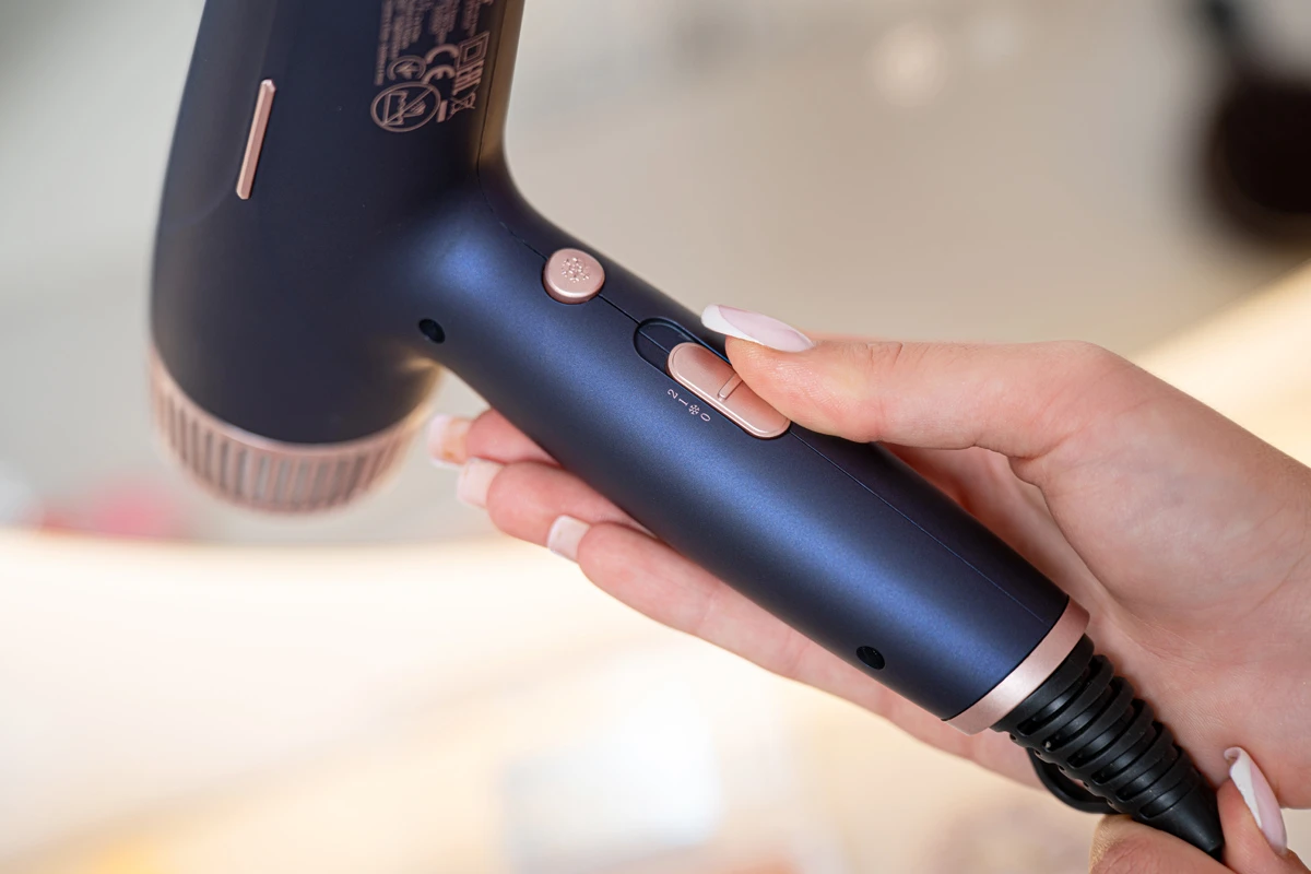 1800–2200 W jauda apvienojumā ar 2 ātruma iestatījumiem un 3 temperatūras līmeņiem garantē ātru un rūpīgu žāvēšanu, kas pielāgota katra matu tipa vajadzībām.