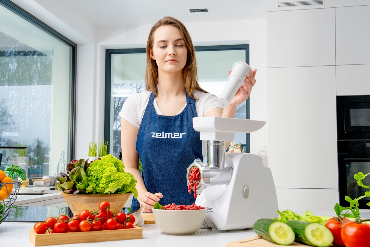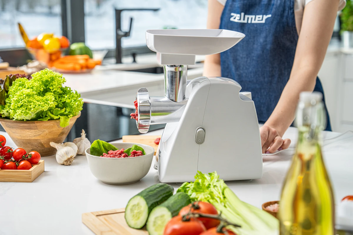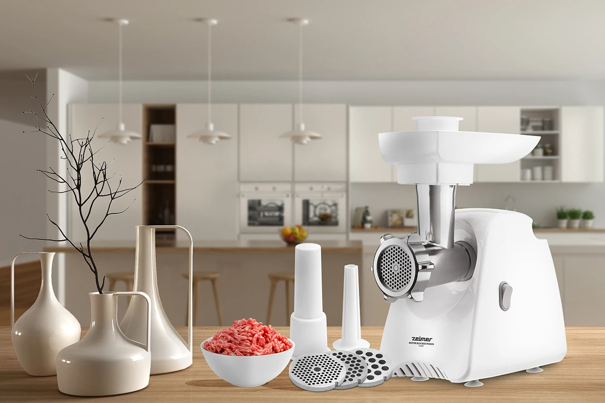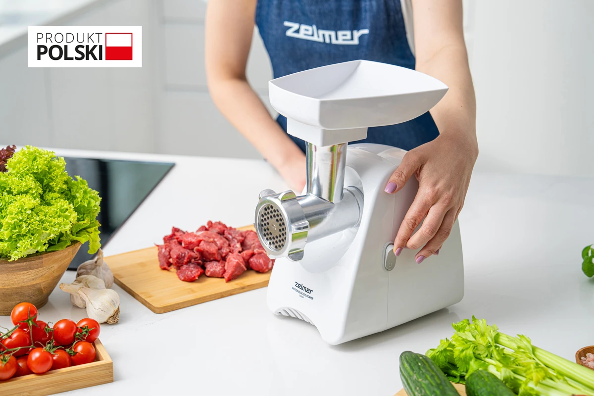 ZMM5801P ir poļu gaļas maļamā mašīna ar 2200 W jaudu, kas ļauj samalt pat 3 kg gaļas minūtē.