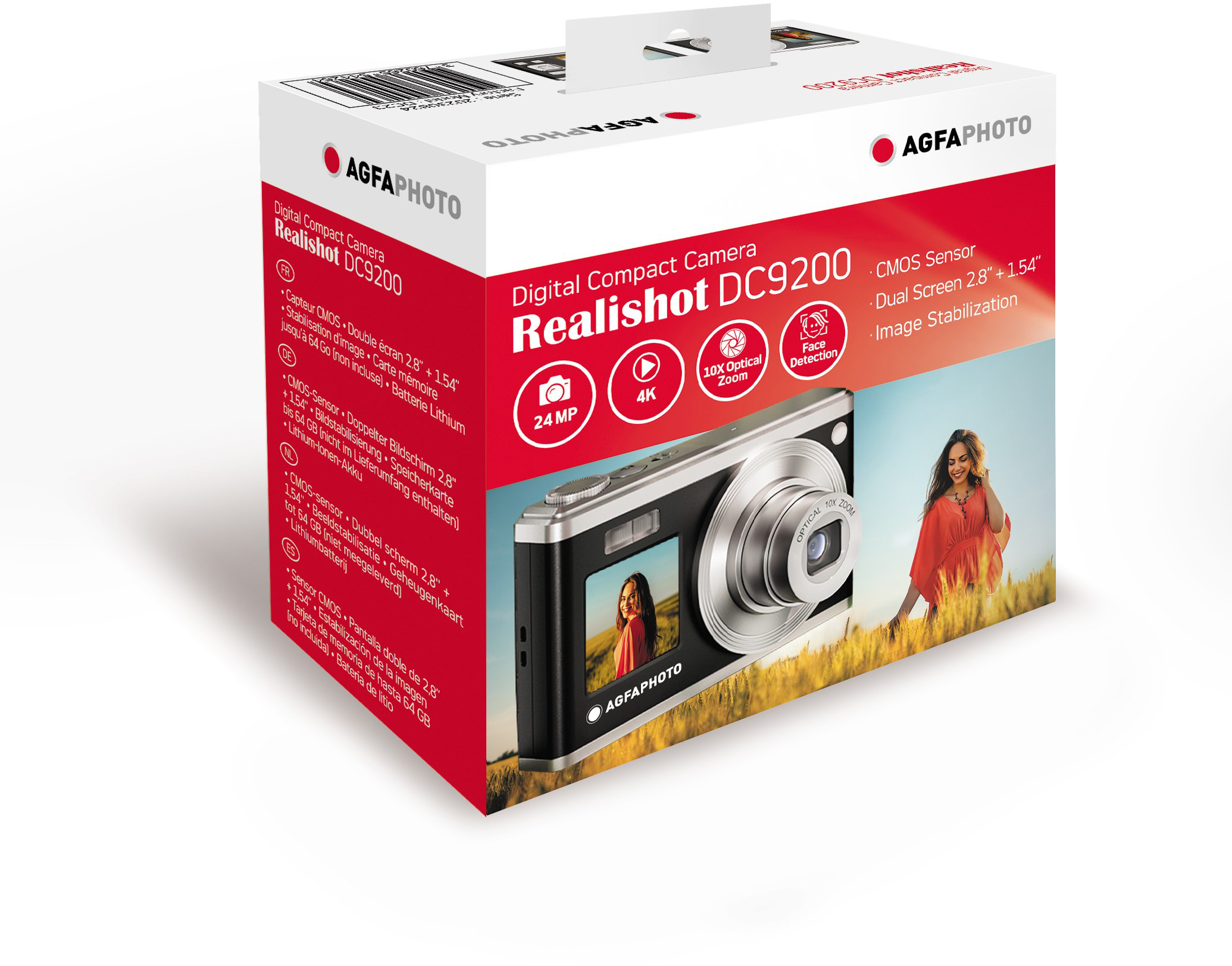 The Realishot DC9200 is our very first compact camera with a 10× optical zoom. With its dual screen, you'll be able to take pictures easily and with incredible results. Available in 2 colours, the AgfaPhoto digital camera will take your best pictures and videos anywhere, in any situation!