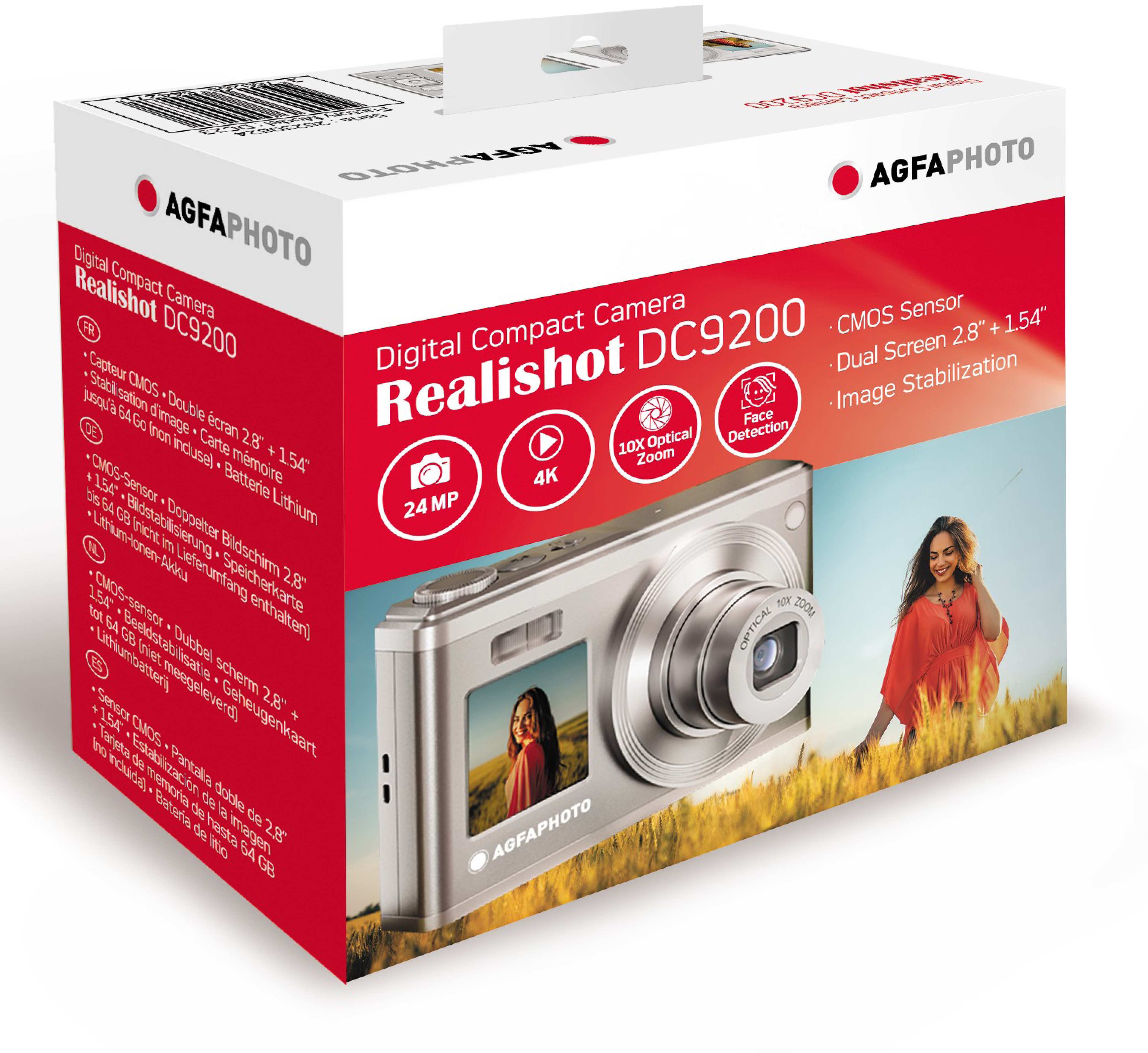 The Realishot DC9200 is our very first compact camera with a 10× optical zoom. With its dual screen, you'll be able to take pictures easily and with incredible results. Available in 2 colours, the AgfaPhoto digital camera will take your best pictures and videos anywhere, in any situation!