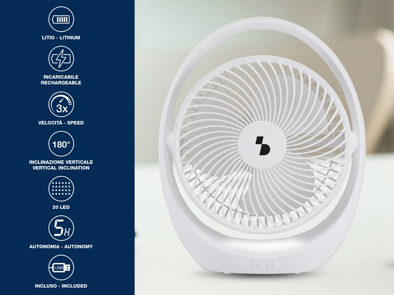 Uzlādējams pārnēsājams ventilators ar LED apgaismojumu