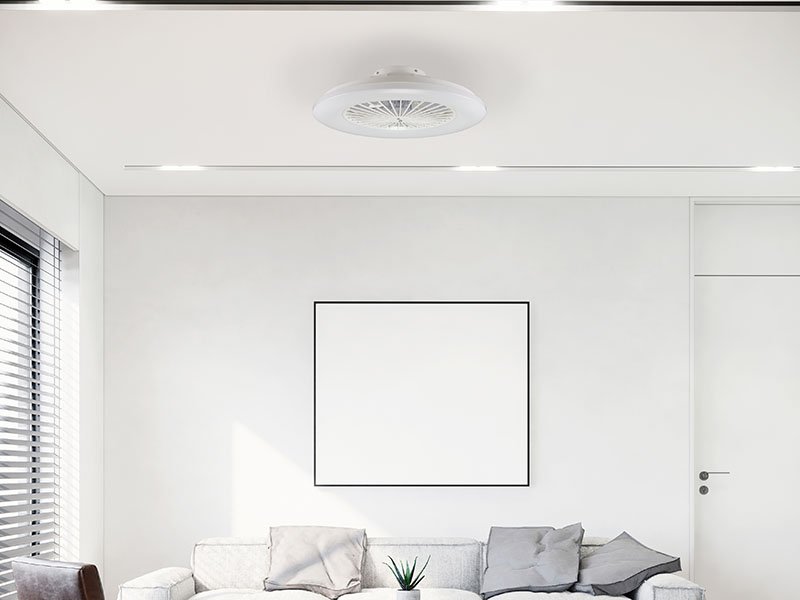 Mūsdienīga dizaina griestu ventilators ar iebūvētu regulējamu LED gaismu, kas regulējams 3 krāsās (siltā gaisma, aukstā gaisma un neitrāla gaisma).