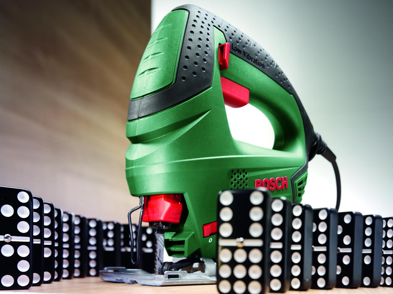 | Citas funkcijas | As easy as can be: compact size, low weight and outstanding handling ensure perfect control and optimum user comfort;Minimal vibration and safe, comfortable work due to Bosch “Low Vibration” with linear mass balance and ergonomic softgrip;Powerful 500 W motor and 65 mm cutting depth in wood – making even hard jobs easy;Switchable dust blowing function ensures a clear view of the cutting line at all times;Bosch SDS ensures effortless and safe saw blade changes within seconds – without the need for additional tools;Improved and enlarged metal base plate for safe and secure handling – adjustment of the base plate for mitre cuts up to 45°;Dust extraction port – for dust-free working;New cable guide with hanging hook for practical storage |