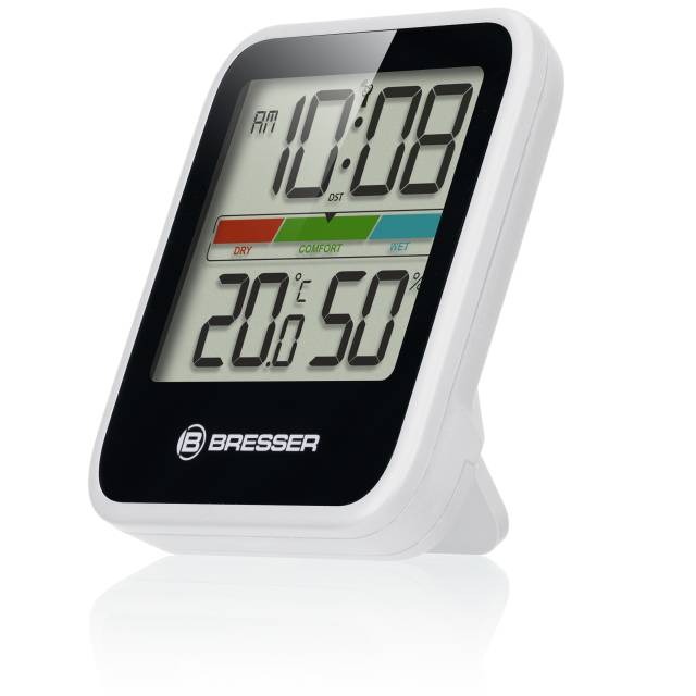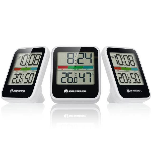 Guļamistaba, virtuve, kabinets, bērnu guļamistaba: BRESSER Climate Monitor termometra/higrometra DCF trīsdaļīgs komplekts parāda pašreizējos gaisa apstākļus trīs atsevišķās vietās. Ir svarīgi, lai iekštelpu temperatūra un mitrums būtu līdzsvaroti, lai mēs justos veseli un labi. Ja gaiss ilgstoši ir pārāk mitrs, pastāv kaitīgas pelējuma veidošanās risks. Un otrādi, ja gaiss ir pārāk sauss, mēs ātri varam izjust diskomfortu. Tas ir īpaši pamanāms aukstās dienās pēc ilgstošas pārkarsēta gaisa iedarbības. Ar termometra/higrometra monitoru jūs varat rūpīgi sekot līdzi iekštelpu klimatam un uzlabot savu veselību un labsajūtu.