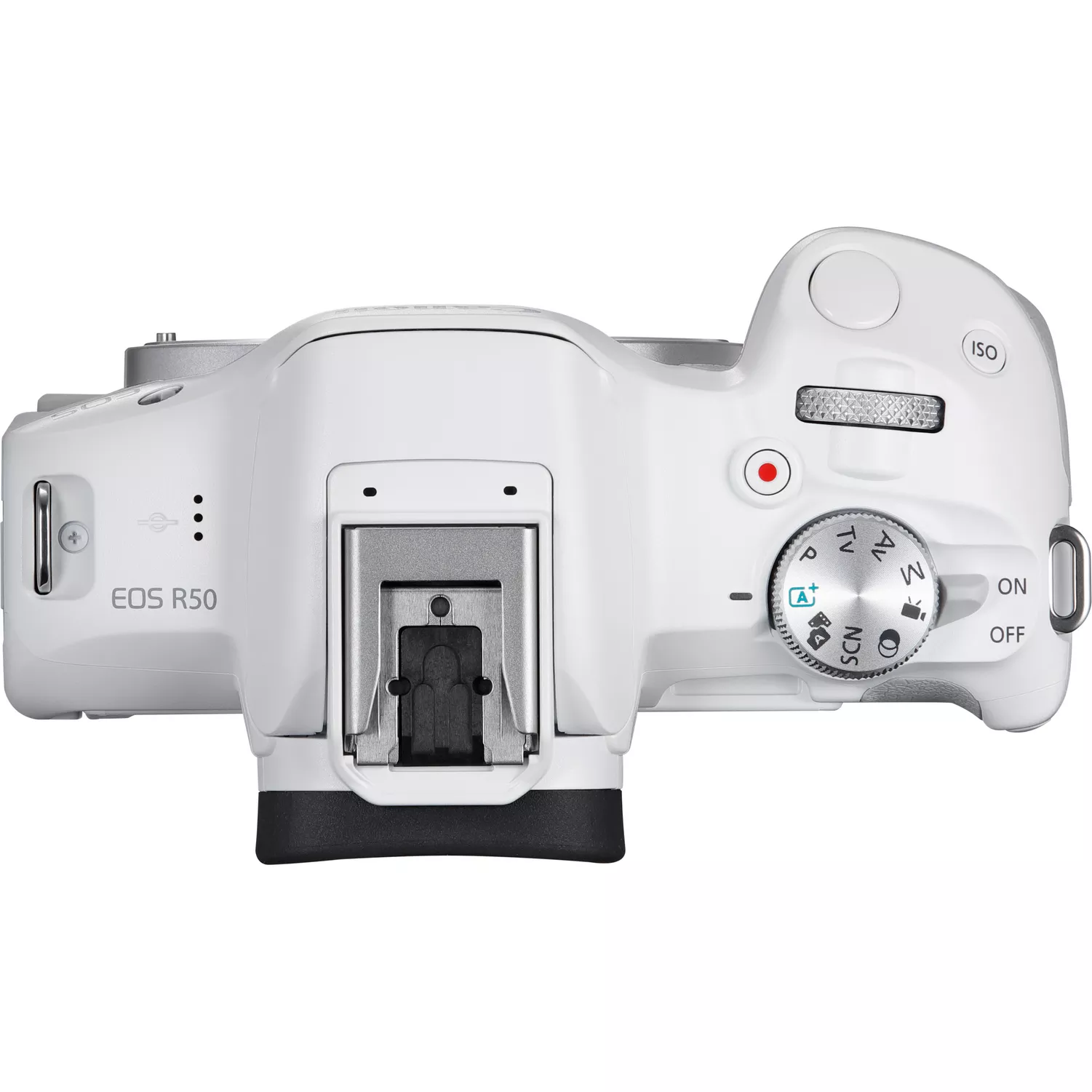 Canon | EOS R50 WH + RF-S 18-45mm F4.5-6.3 IS STM (SIP) | Megapixel 24.2 MP | Image stabilizer | ISO sensitivity (max) 32000 | Display diagonal 2.95 " | Wi-Fi | Video recording | Automatic, manual | CMOS | White
