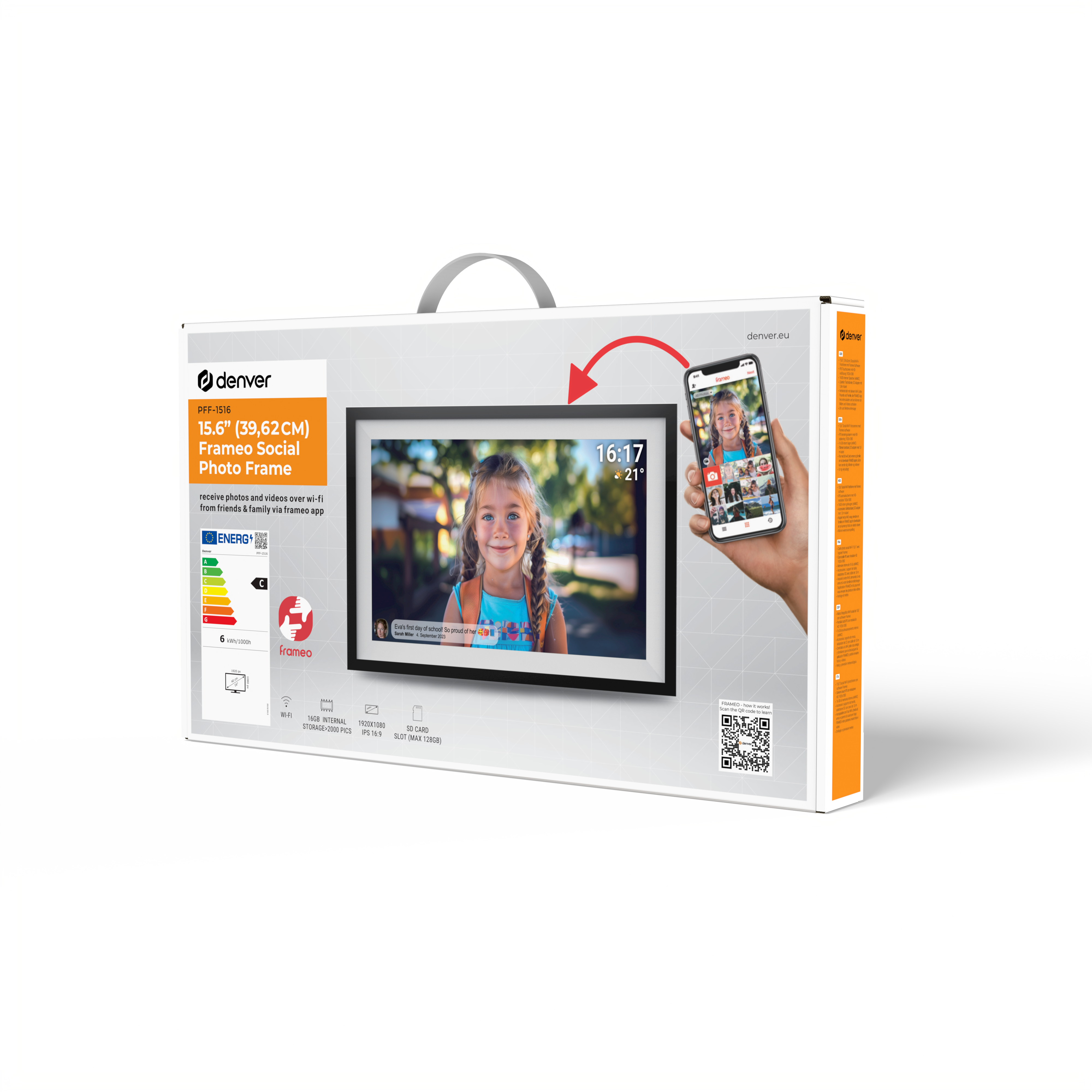 Skatiet atmiņas 15,6 collu Full HD IPS skārienekrānā ar 1920 x 1080 izšķirtspēju un 16 GB krātuvi tūkstošiem fotoattēlu.
