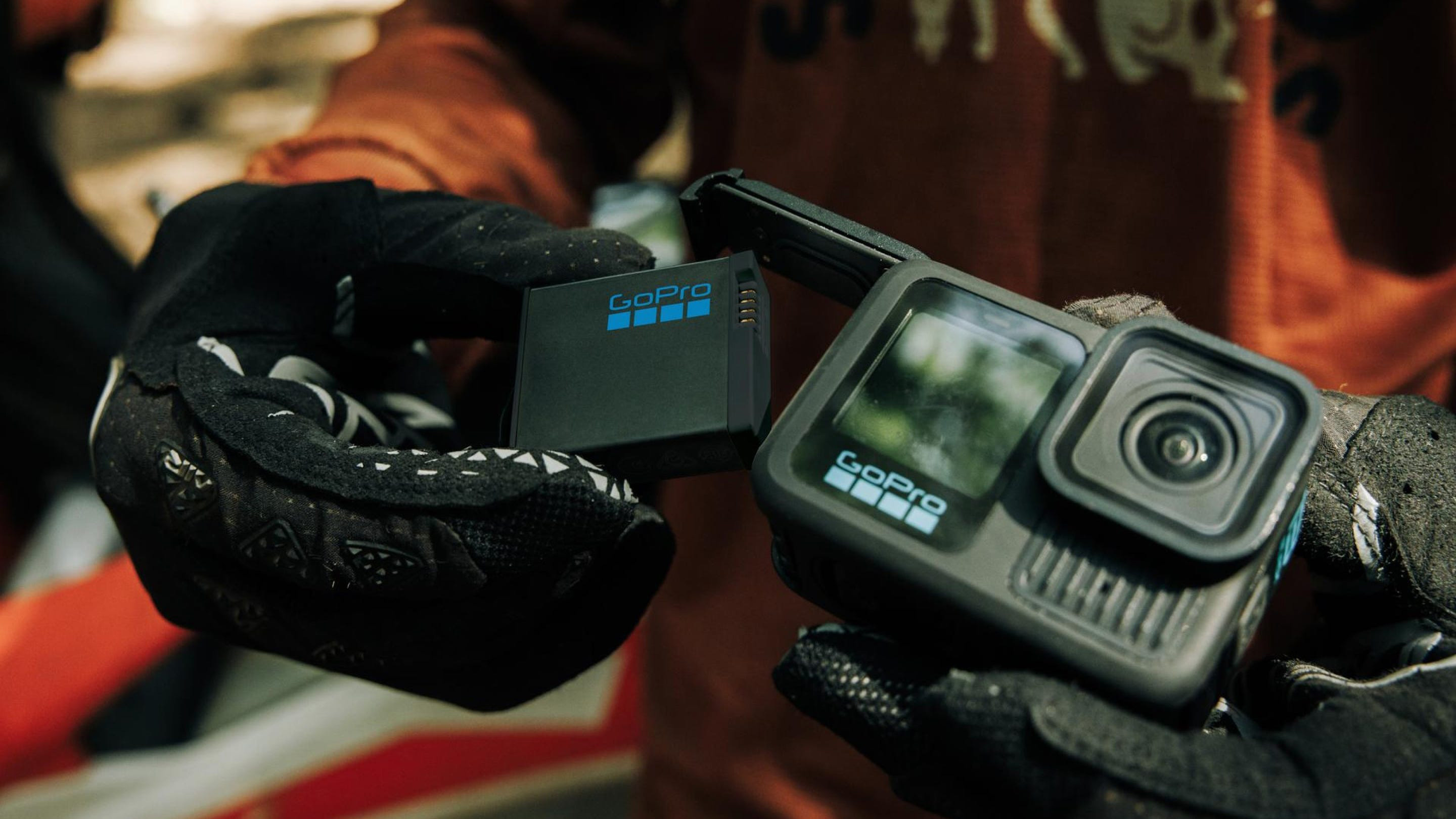 HERO13 Black has more power options than any GoPro before it. The Contacto Waterproof Magnetic Power Cable and Door Kit features a magnetic link that gives you a quick and simple way to connect to an external power source. The Dual Battery Charger + Integrated Powerbank features its own internal battery that can conveniently charge the two included Enduro batteries anywhere. It can also be plugged directly into your camera for extralong recording sessions.