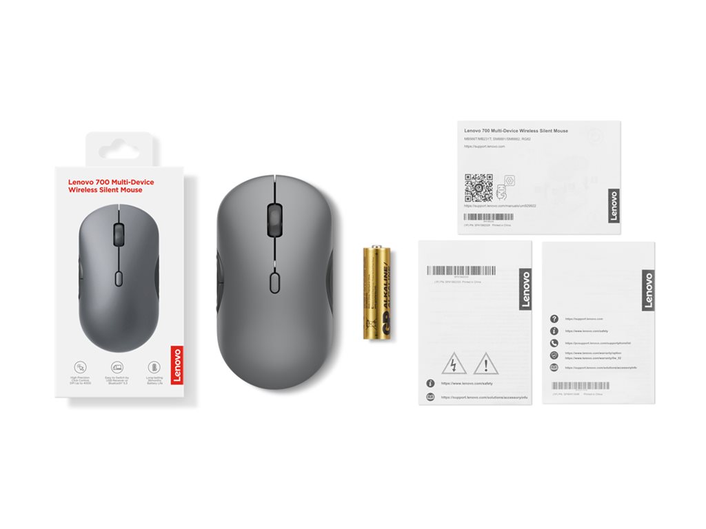 Lenovo | 700 Multi-Device Wireless Silent Mouse | Wireless | 2.4G, Bluetooth 5.3 | Luna Grey