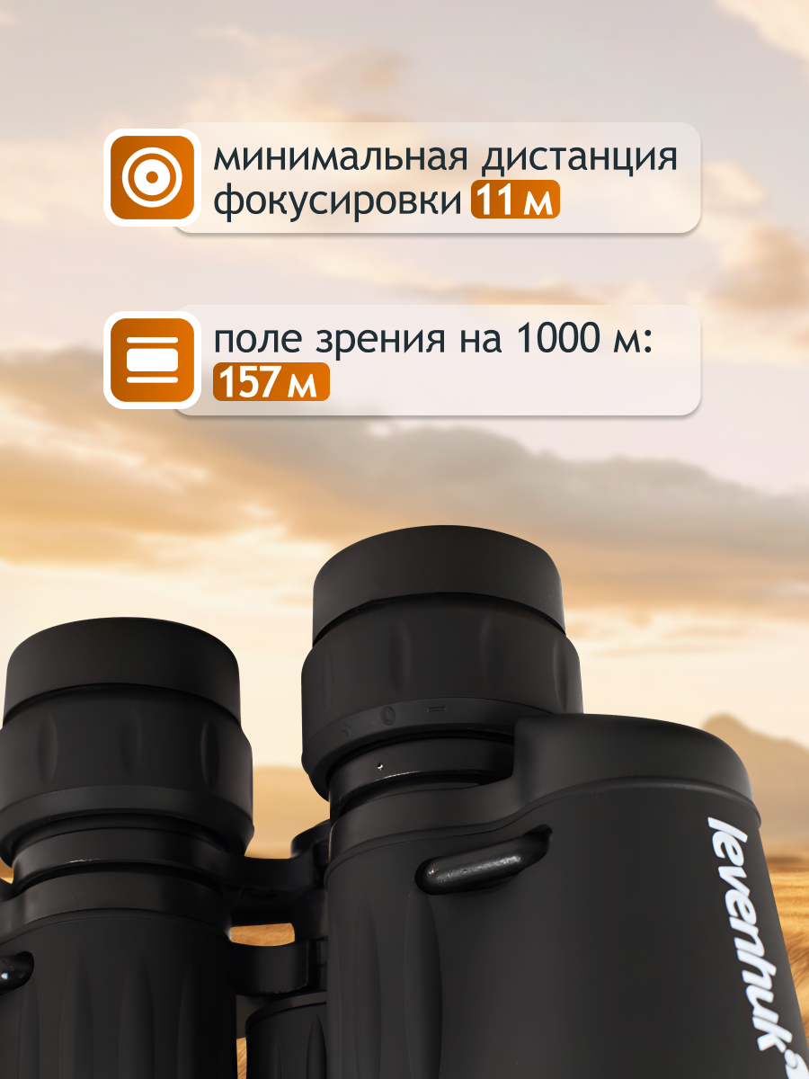 IPX3 vērtējums norāda, ka ierīce ir izsmidzināšanas noturīga, tas nozīmē, ka tā var izturēt ūdens šļakas, nesabojājoties, lai gan tā nav pilnīgi ūdensizturīga. Alumīnija korpusa ārējā puse ir ar gumiju pārklāta, lai labāk turētu, novēršot to izslīdēšanu no slapjām rokām. Ar svaru zem 700g, Levenhuk New Atom 7x35 binokļi jums nepagrūdīs sacensību laikā. Garām skatīšanai sesijām to var ērti piestiprināt pie statīva, izmantojot adapteri (pārdod atsevišķi). Komplektā ietilpst gaisma un objektīva aizsargkrāni, kakla siksna, pārnēsāšanas soma, un lēcu tīrīšanas drāna.