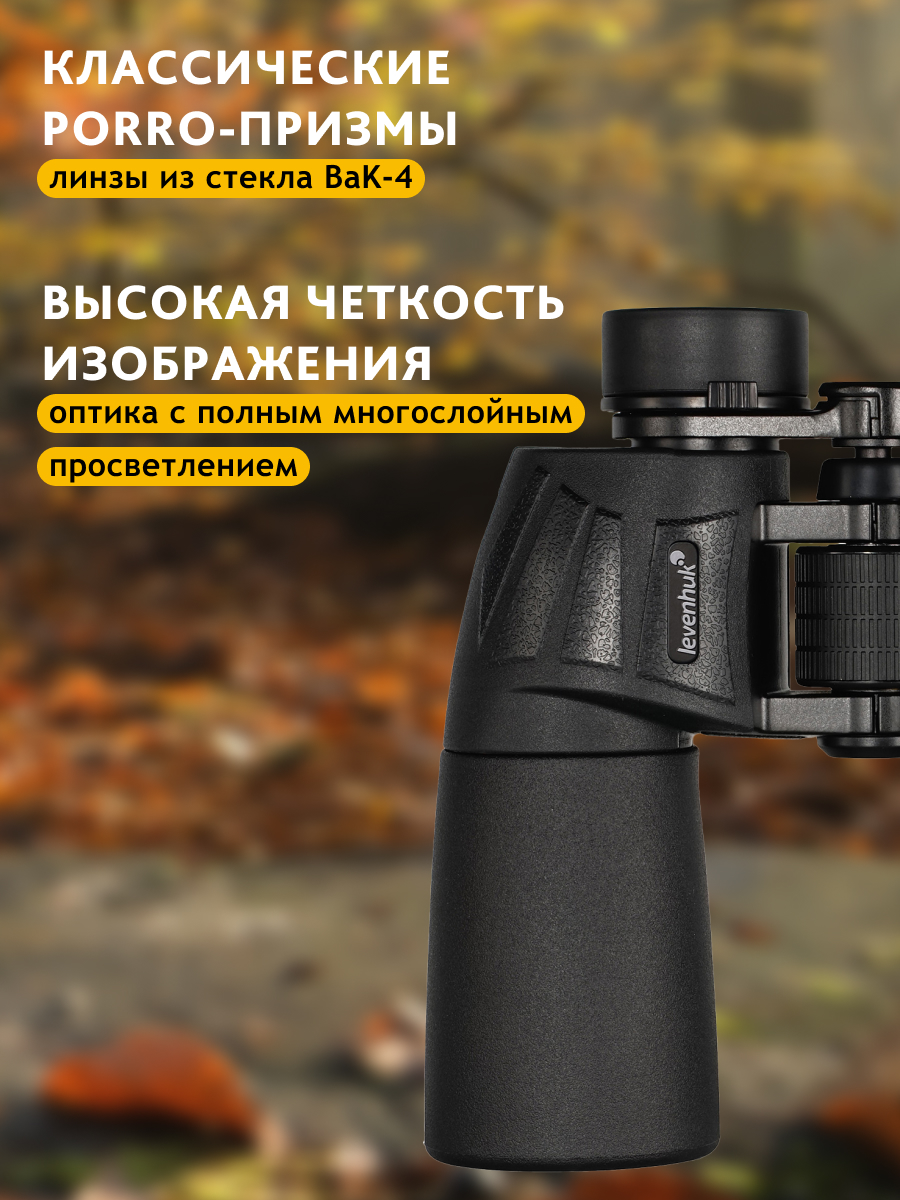 Levenhuk New Sherman BASE 10x50 binokļi ir paredzēti dabas novērošanai, medībām, zvejniecībai un profesionālai izmantošanai drošības un robežsardzes speciālistiem. Ar spilgtajiem optiskajiem elementiem, kam ir 50 mm objektīva lēcas un daudzslāņu pārklājums, šie binokļi nodrošina asas, detalizētas attēlu kvalitāti pat vājā apgaismojumā. 10x palielinājums, kas piemērots gan rokas, gan statīva lietošanai, ļauj novērot attālumus un padara šos binokļus par universālu risinājumu dažādām situācijām.