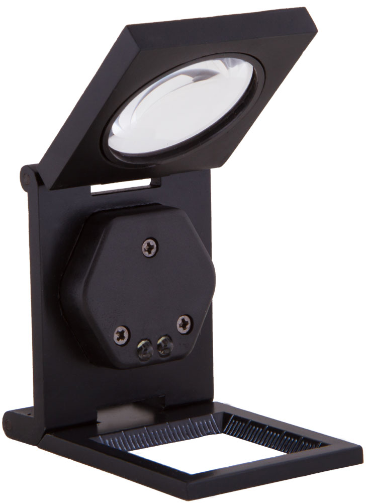 Statīva pamatnē atrodas rāmis ar mērskalu collās un centimetros. Virs rāmja ir izvietotas divas LED gaismas diodes, un to gaisma tiek novirzīta tieši uz laukumu zem lēcas. Apgaismojuma intensitāti var regulēt. LED gaismas diodes darbojas ar divām CR927 tipa baterijām.
