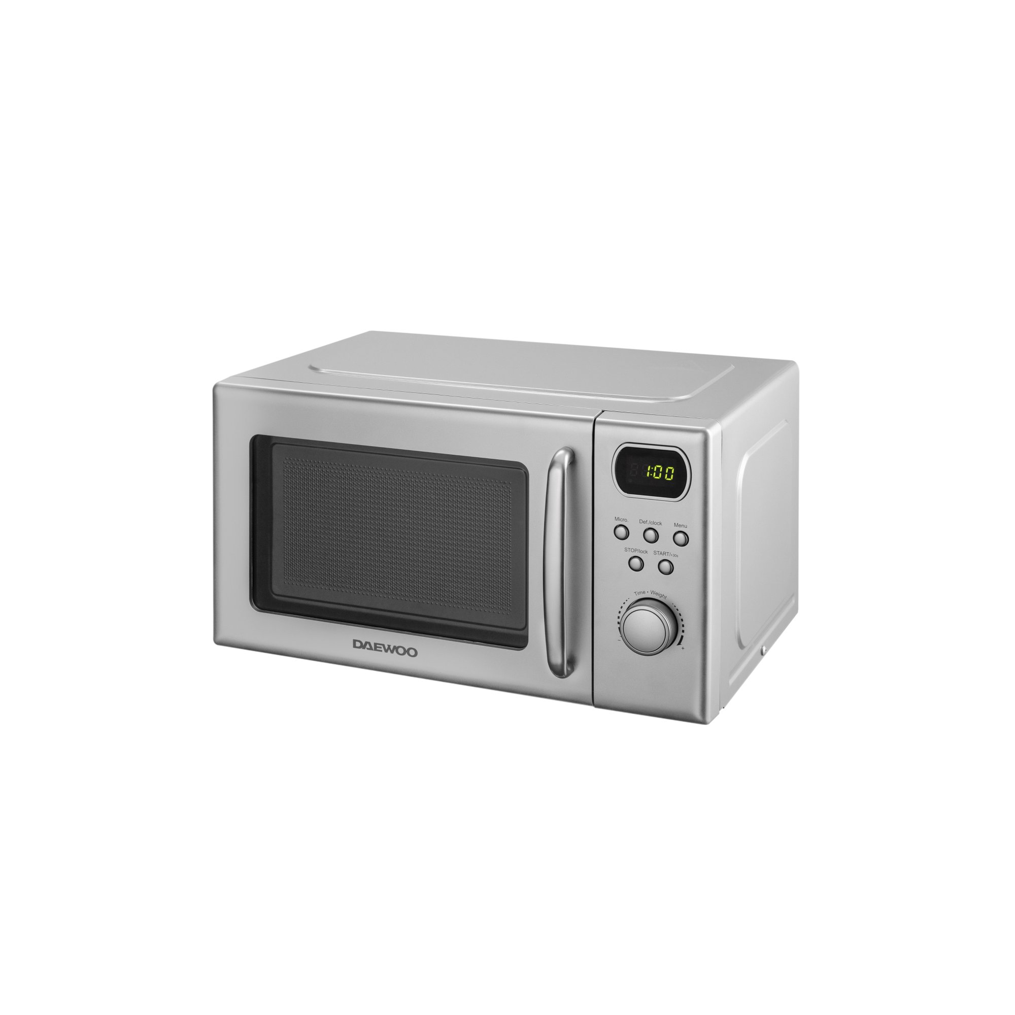 Mikroviļņu krāsns, 20L, 700W, KOR 6S2BS 2, Daewoo. Tilpums 20L. Krāsa sudraba. Durvju atvēršana ar rokturi. Rotējošais šķīvis 25.5 cm. Tips solo. Mikroviļņu jauda 700W. Gatavošanas režīmu skaits 8. Vadības tips digitāls ar displeju. Izmēri (AxPxD) 25.9x44.5x36 cm. Svars 10.5 kg.