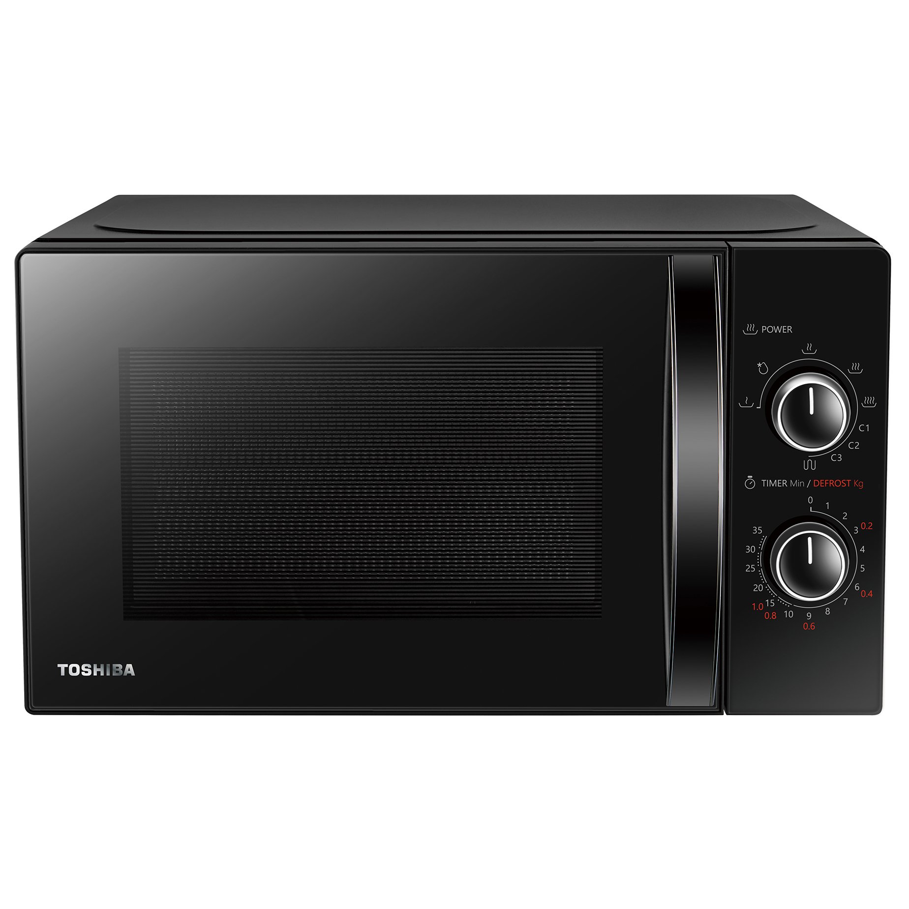 Mikroviļņu krāsns Toshiba MW2 MG20PBK, 20 L, ar mehānisko vadību, 800 W mikroviļņu jaudu, 1000 W, 5 jaudas līmeņiem, grila funkciju un LED apgaismojumu, melnā krāsā. Tā ir izstrādāta, lai saīsinātu gatavošanas laiku, nezaudējot veiktspēju: 450 g gaļas tā atkausē 6 minūtēs un 30 sekundēs, bet 450 g ēdiena uzsilda 4 minūtēs un 30 sekundēs. Ierīcei ir grila funkcija, elegants dizains, atkausēšanas programma, intuitīvs vadības panelis, LED apgaismojums, izturīgas eņģes, neslīdošas kājiņas un ūdensizturīga, viegli tīrāma iekšējā siena. Izmēri: 44 × 33,4 × 25,9 cm.