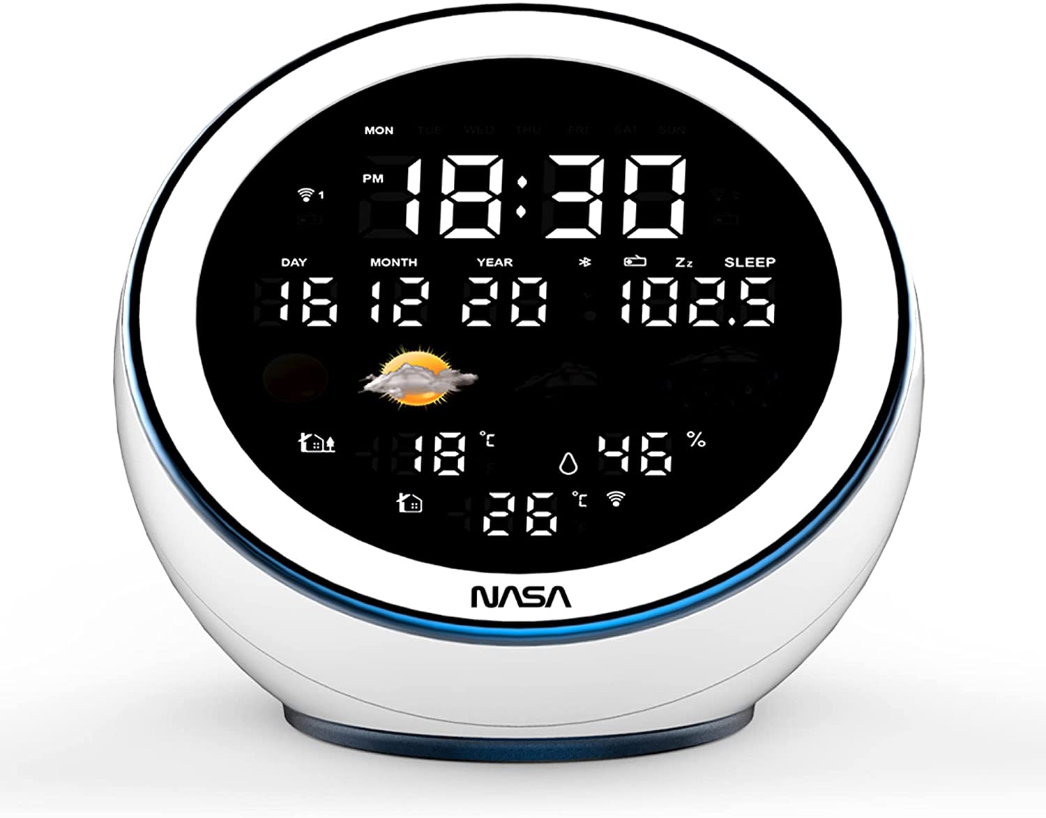 Nasa WSP1500 white Weather Station/Speaker BT Moon