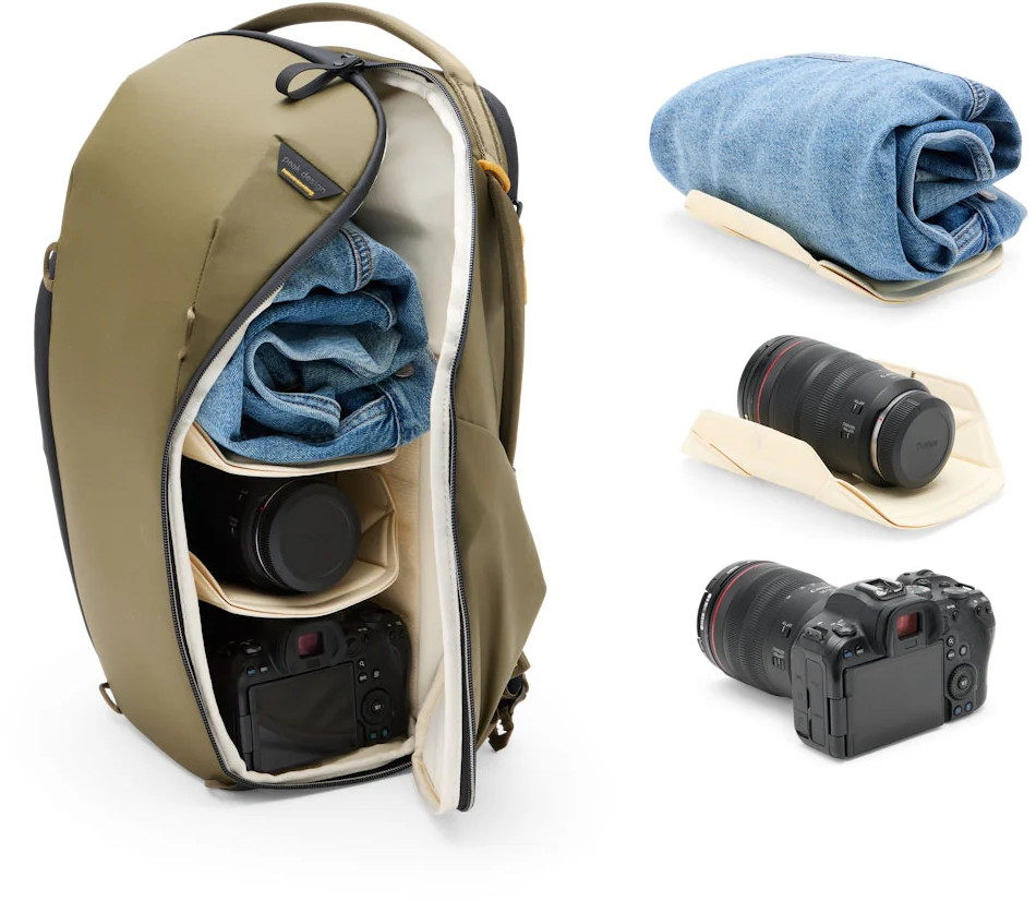 A visually and functionally simpler version of our iconic Everyday Backpack, the Everyday Backpack Zip's ultra-clean aesthetic makes it ideal for discreet urban everyday or photo carry. Accessible on the top and sides via a single weatherproof 270-degree ultra-durable #8 zip. 2 internal FlexFold dividers keep gear organized, protected, and not bunched at the bottom of your bag. Dedicated sleeves fits 16" laptop, 12.9" tablet, or documents, plus a variety of internal slip pockets for small items. 100% recycled 400D weatherproof shell keeps everything safe. Expandable side pockets for water bottles or tripod. Integrated luggage carry pass-through. 2 stowable cinch straps let you carry more externally. All-custom hardware, minimal dangling straps.