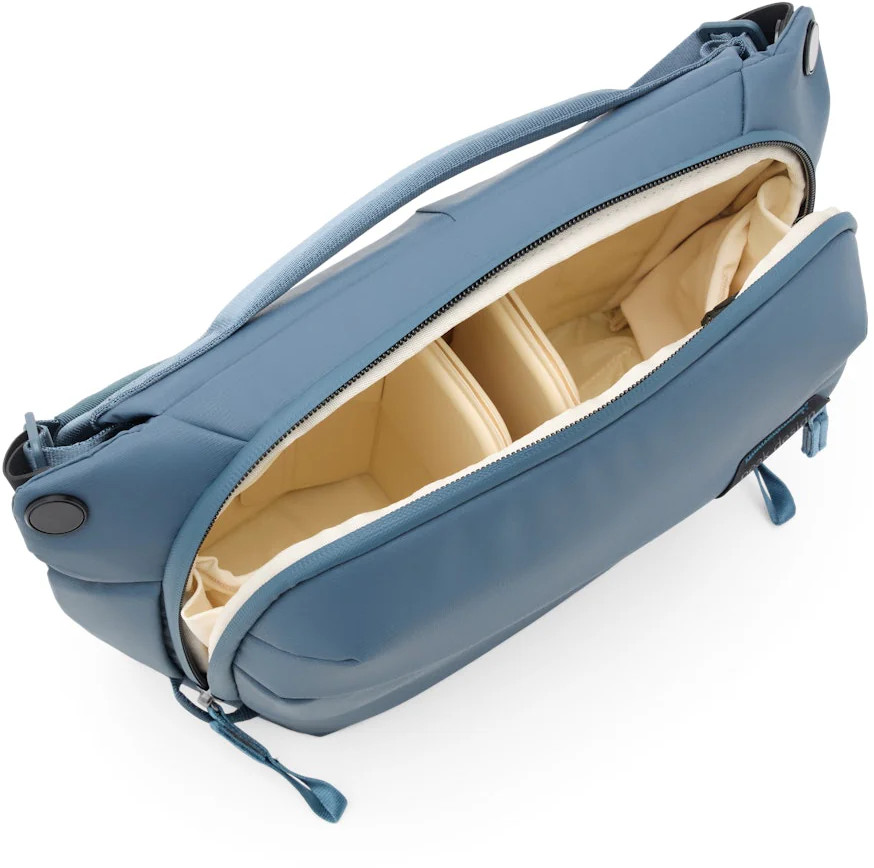 Inside, the Everyday Sling boasts a well-organized layout with customizable padded dividers. These dividers can be adjusted to fit a variety of gear, from camera equipment to personal items. The spacious main compartment allows for efficient organization and quick access to your belongings.