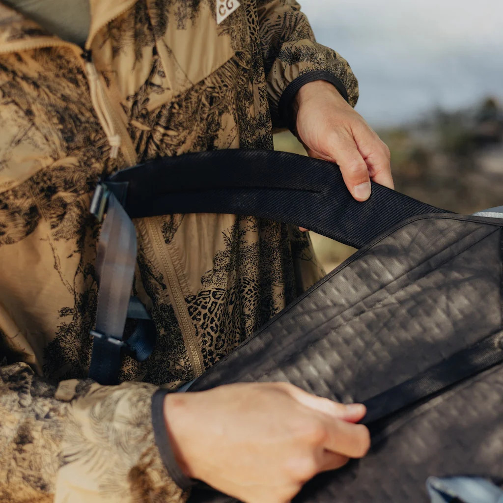 Padded shoulder and waist straps stow under magnetic flaps for worry-free bag-checking, with axial strap attachments providing all-day comfort for all body types. The bag also includes a stowable sternum strap and 360-degree grab handles for versatile carrying options.