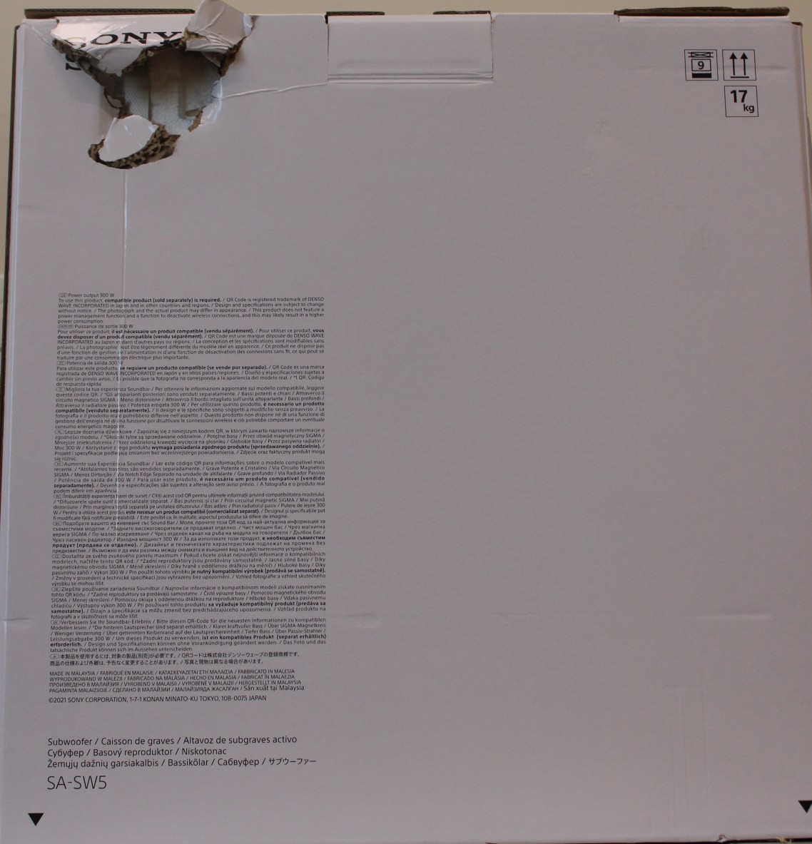 SALE OUT. Sony SA-SW5 Wireless 300W Subwoofer for HT-A9/A7000 | Sony Speaker | Subwoofer for HT-A9/A7000 | DAMAGED PACKAGING | 300 W | Black | 2 Ω | Portable | Wireless connection