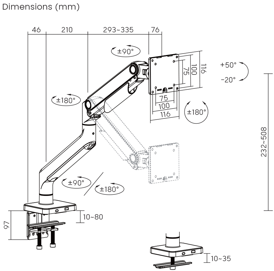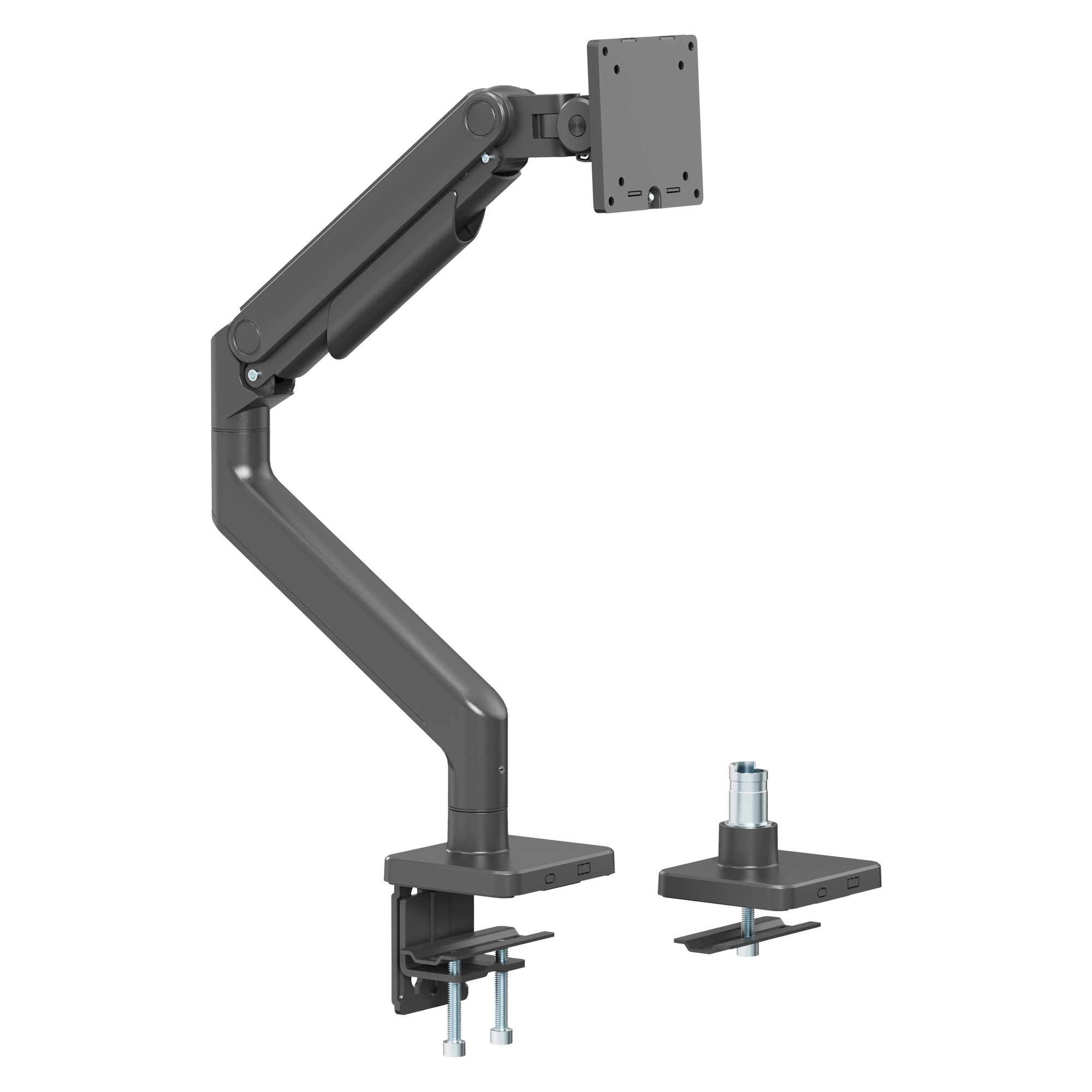 Šis stiprinājums ir izstrādāts vienkāršai monitora uzstādīšanai, un tam ir atsperes svira, kas ļauj regulēt augstumu, slīpumu un rotāciju, nodrošinot jums perfektu skata leņķi, lai uzlabotu produktivitāti un komfortu.