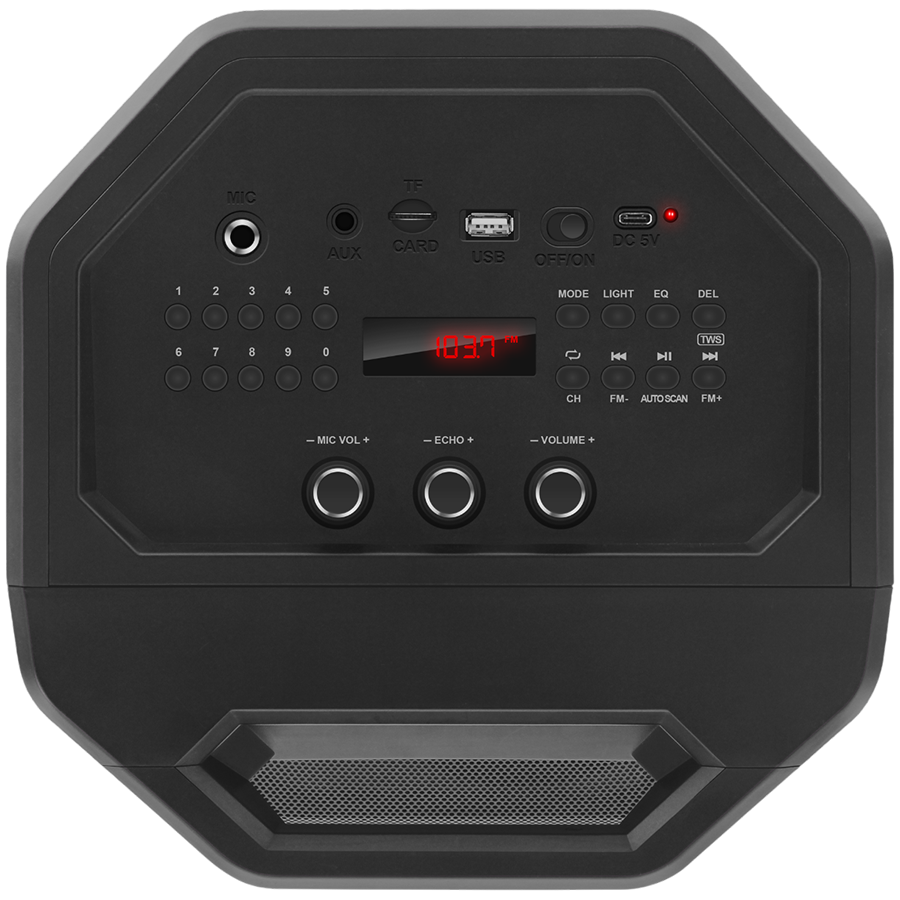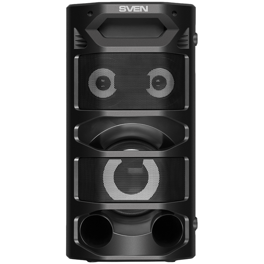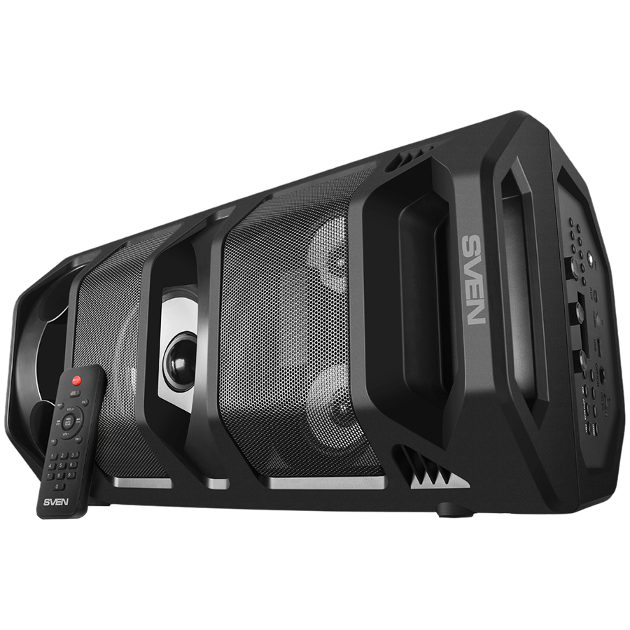 2.0 portable speaker SVEN PS-670, black, power output 2x32.5W (RMS), TWS, Bluetooth, FM, USB, microSD, LED-display, RC, lithium battery