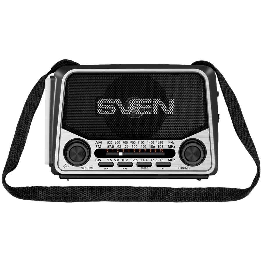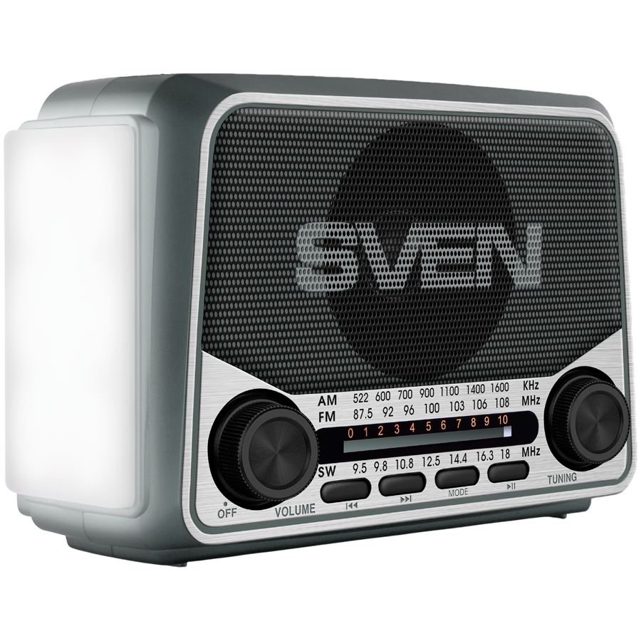 Speaker SVEN SRP-150, gray (3W, Bluetooth, FM/AM/SW, USB, microSD, flashlight, battery)