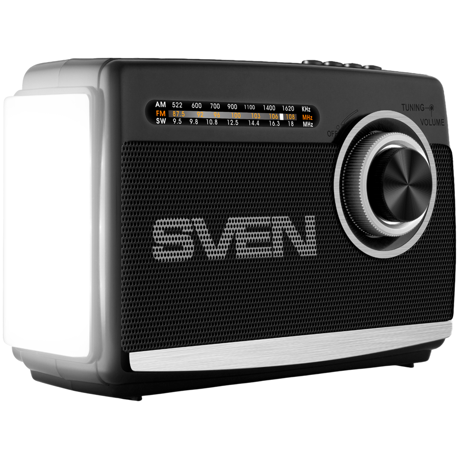 Speaker SVEN SRP-155, black (3W, Bluetooth, FM/AM/SW, USB, microSD, flashlight, battery)