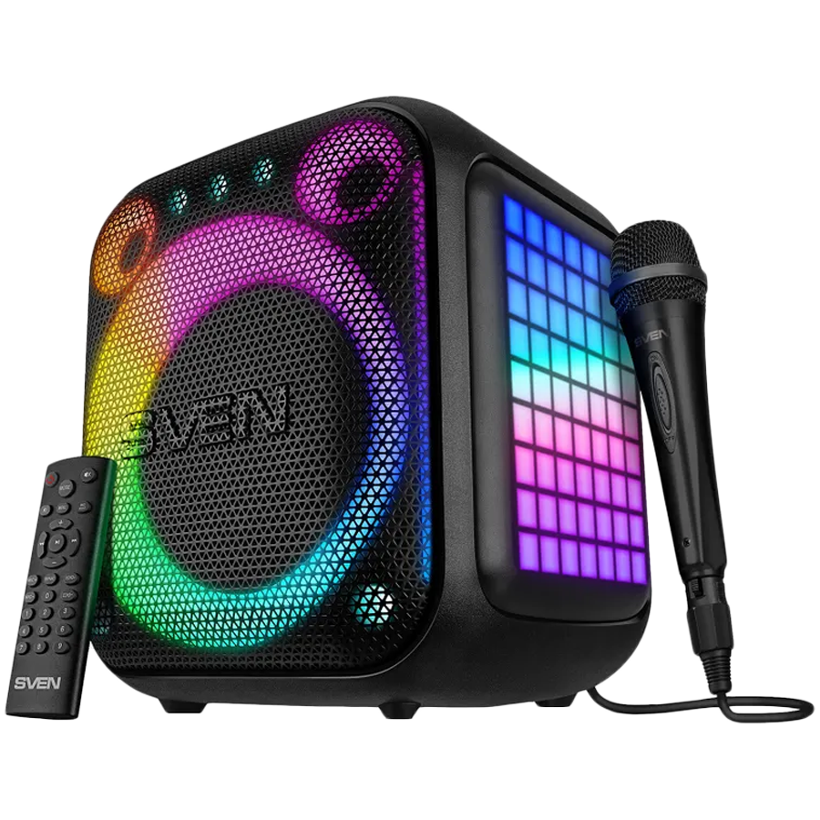 SVEN PS-880, black, power output 110W (RMS), TWS, Bluetooth, FM, USB, microSD, LED-display, lithium battery