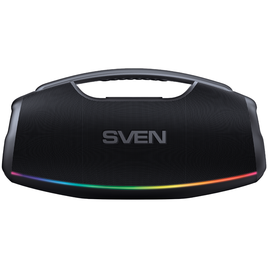 Portable speaker SVEN PS-990, black, power output 180W (RMS), TWS, Bluetooth, RGB backlight, Waterproof (IPx7), USB, Lithium battery, Battery life – up to 16 hours