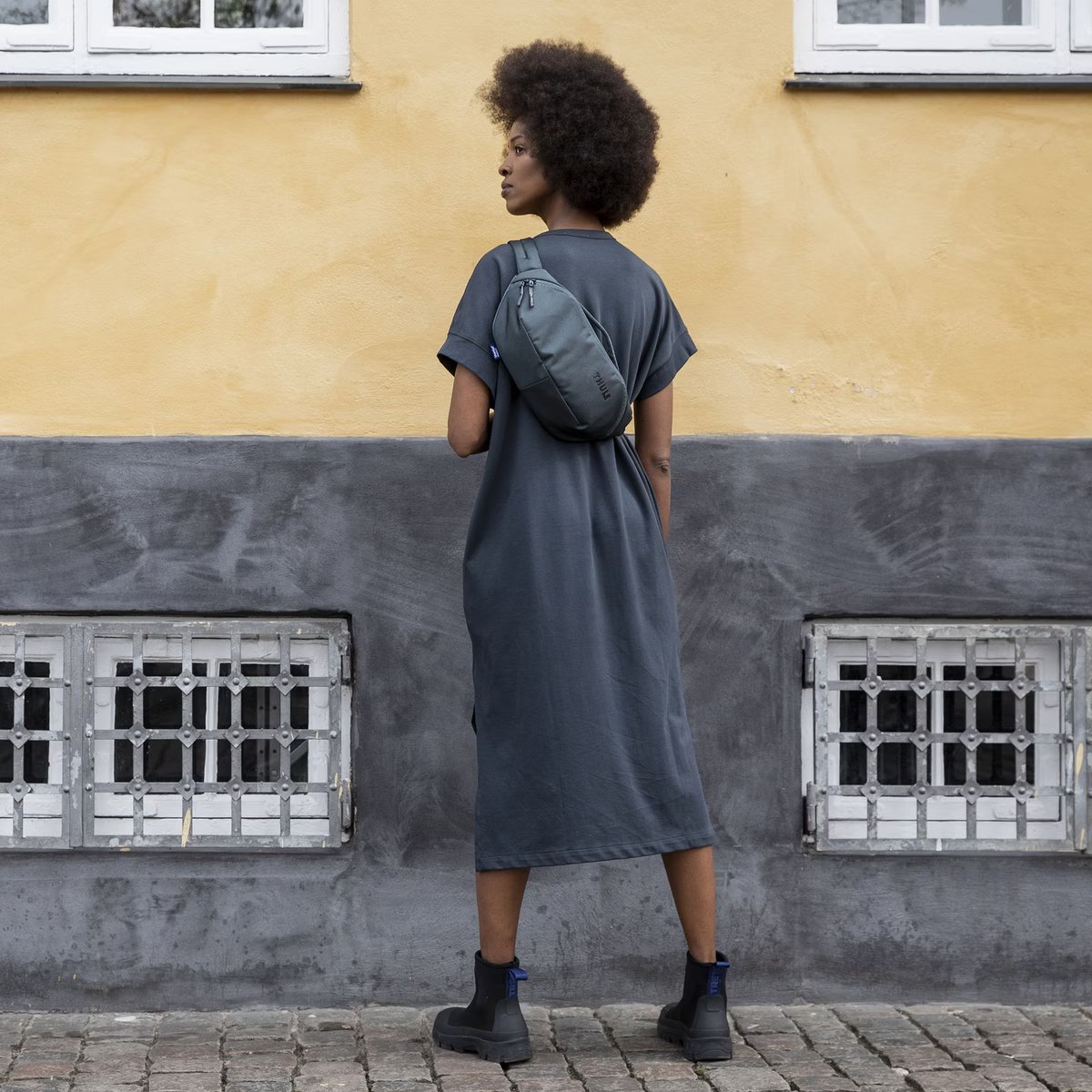Saliekama siksna ļauj ērti nēsāt slingu pār plecu kā somu pār plecu vai pārveidot par iepakošanas kubu lielākā somā