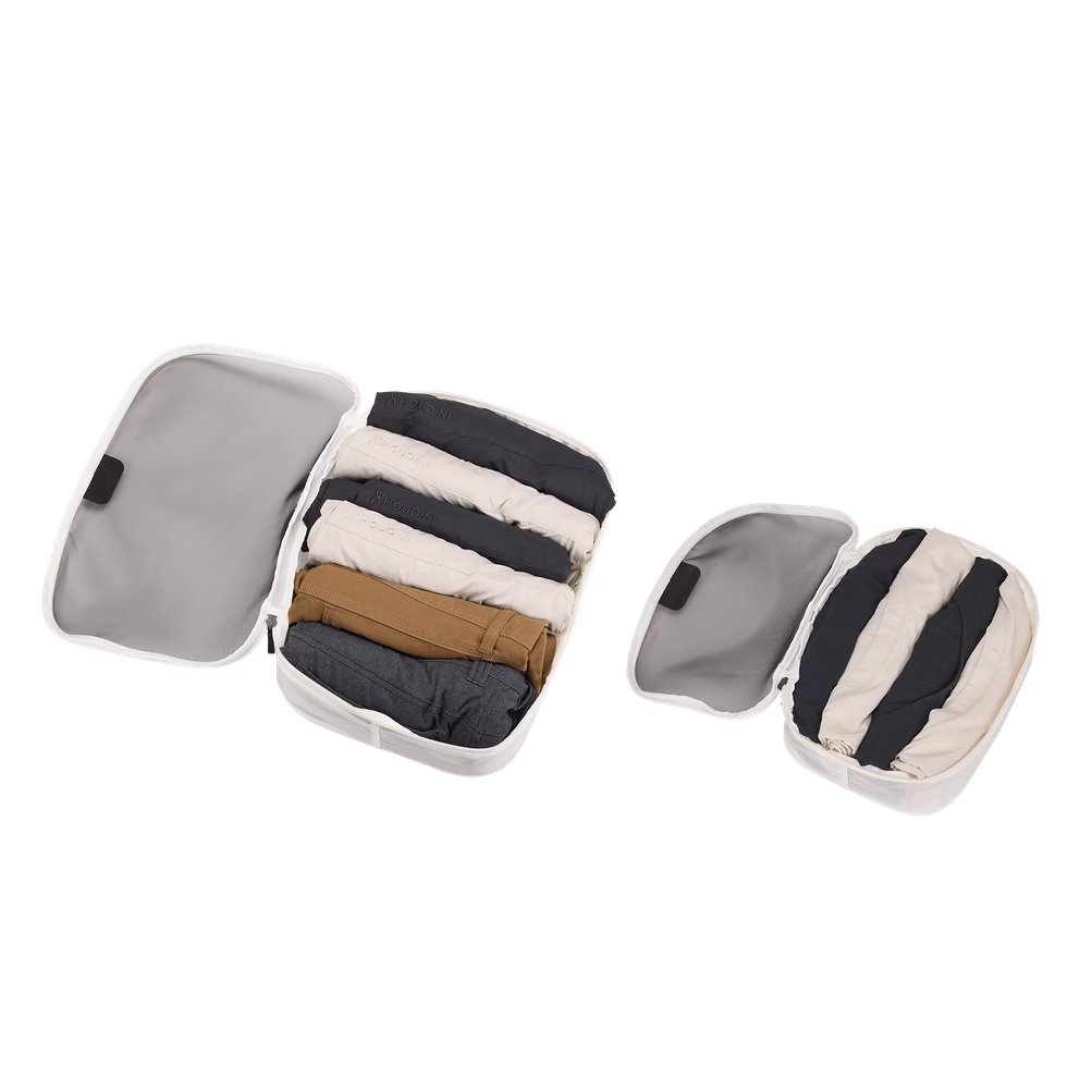 Komplekta izmērs ir piemērots lielākajai daļai rokas bagāžas, atstājot vietu citām lietām.