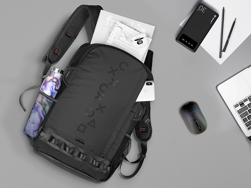 Īpaši nodalījumi klēpjdatoram, austiņām, pelei un strāvas adapterim