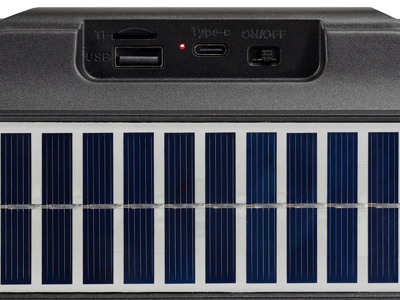 | Strāvas padeve | USB ports, saules panelis |