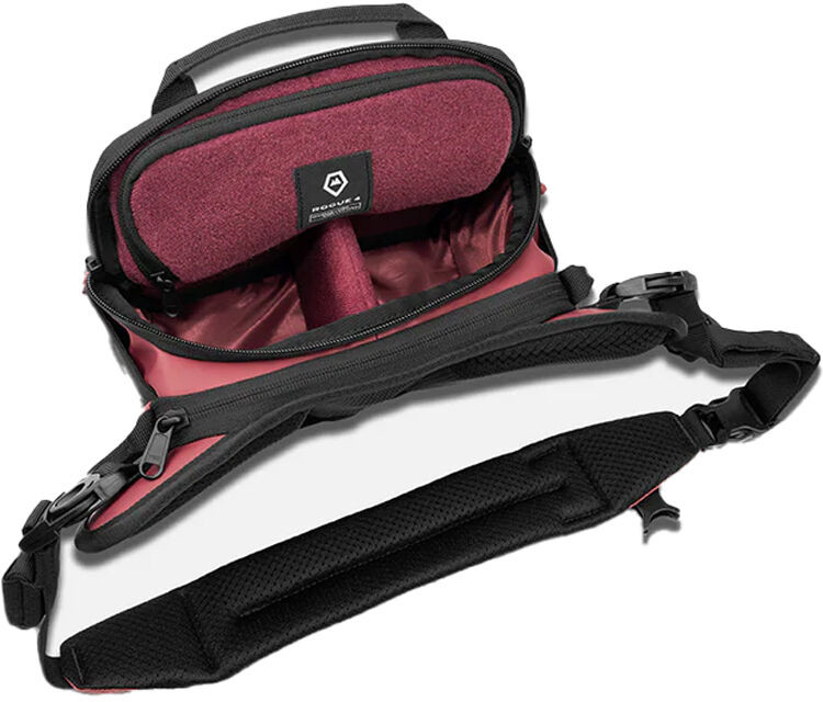 Constructed from rugged, weather-resistant materials with a soft interior lining, the ROGUE uses a padded, adjustable strap and breathable back panel for comfortable all-day carry. The main compartment includes a removable divider to secure a small camera or to separate everyday items, while exterior pockets keep essentials close at hand.