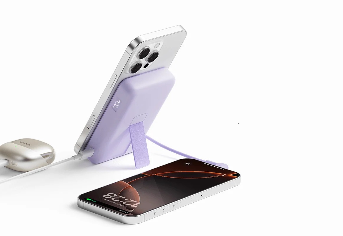 | Citas funkcijas | Adjustable stand; Strong 13N magnetic force; Integrated USB-C cable; Two-way fast charging; Digital display; High-capacity battery; Compatible with multiple devices; Pass-through charging |
